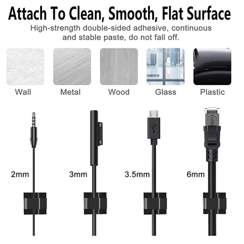 The application is very simple: clean the surface, press the clip firmly, and insert the cable. This allows cables to be neatly routed and organized without slipping or getting in the way.