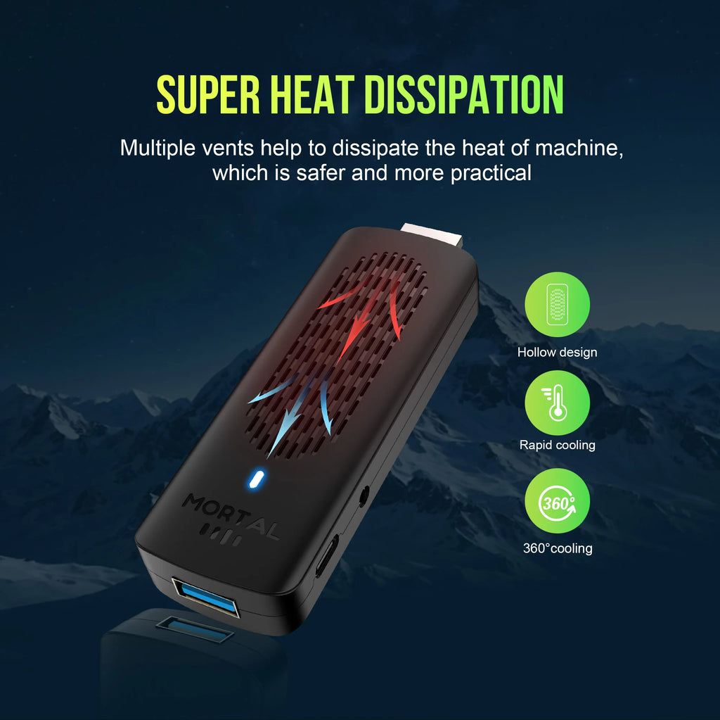 Der kompakte Stick misst 11 x 4,5 x 2,2 cm bei einem Gewicht von nur 0,27 kg und ist perfekt für Heimkino, mobiles Streaming, Gaming oder Büroanwendungen. Es sind keine eingebauten Lautsprecher oder Batterien erforderlich, wodurch der Stick leicht, tragbar und zuverlässig ist.