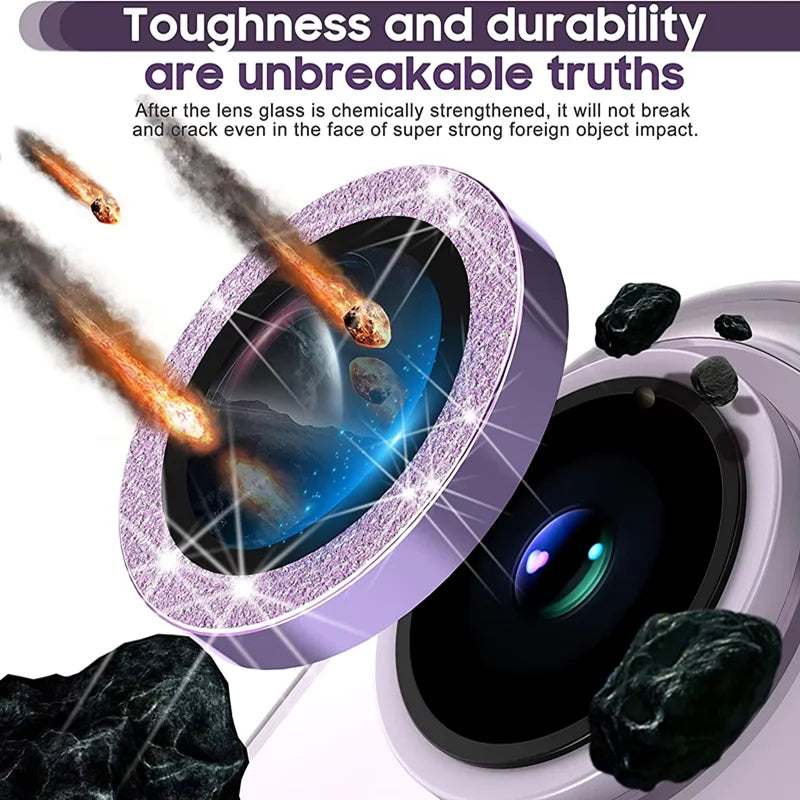 Die diamantbesetzte Metallrahmen-Optik verleiht Ihrem iPhone 17 Pro, Pro Max oder Plus einen luxuriösen und funkelnden Look. Dank der präzisen 1:1 Passform deckt das Schutzglas die gesamte Kameralinse ab, ohne die Fotoqualität oder den Blitz zu beeinträchtigen.