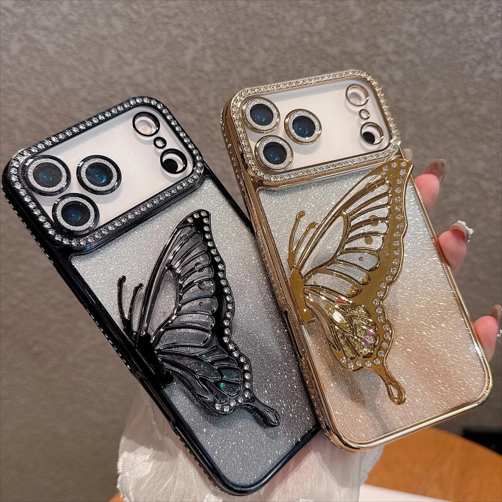 iPhone 17 Glitzer-Hülle mit 3D-Schmetterlingshalter