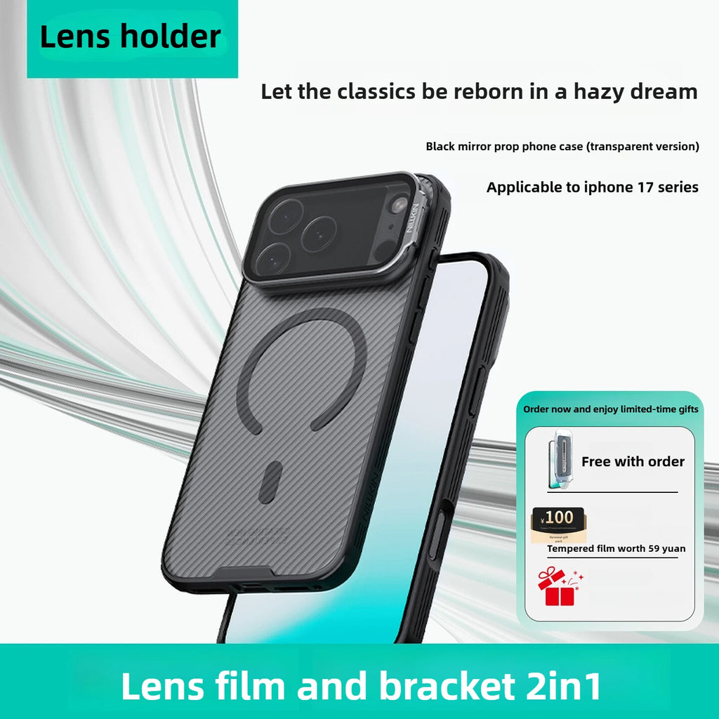 2-in-1 Magnet Hülle mit Kamera Schutz und Ständer für iPhone 17 Serie – Transparent Schwarz