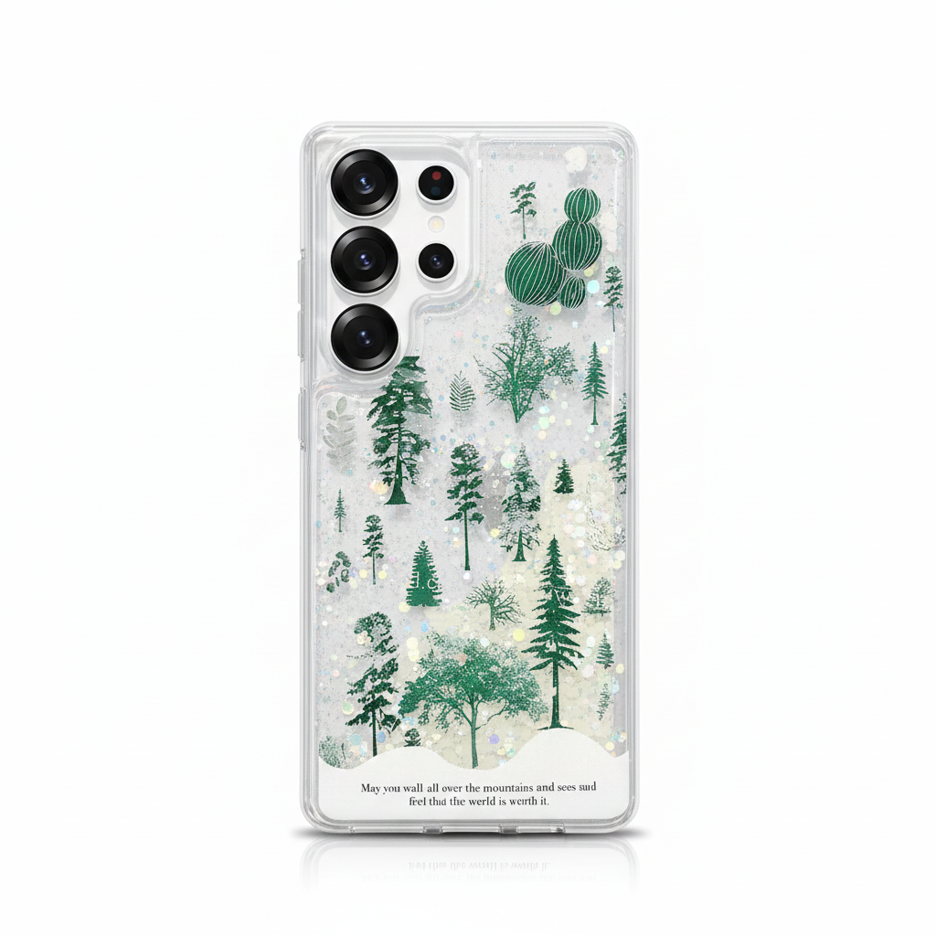 Hergestellt aus hochwertigem flüssigem Silikon, liegt die Hülle angenehm in der Hand und bietet eine rutschfeste Oberfläche. Sie schützt effektiv vor Stößen, Kratzern und Fingerabdrücken und verfügt über eine stoßfeste Bumper-Funktion, die das Gerät rundum absichert. Die transparente Struktur lässt das Design des Smartphones sichtbar bleiben, während der funkelnde Treibsand und das romantische Waldmuster das Gerät optisch aufwerten.