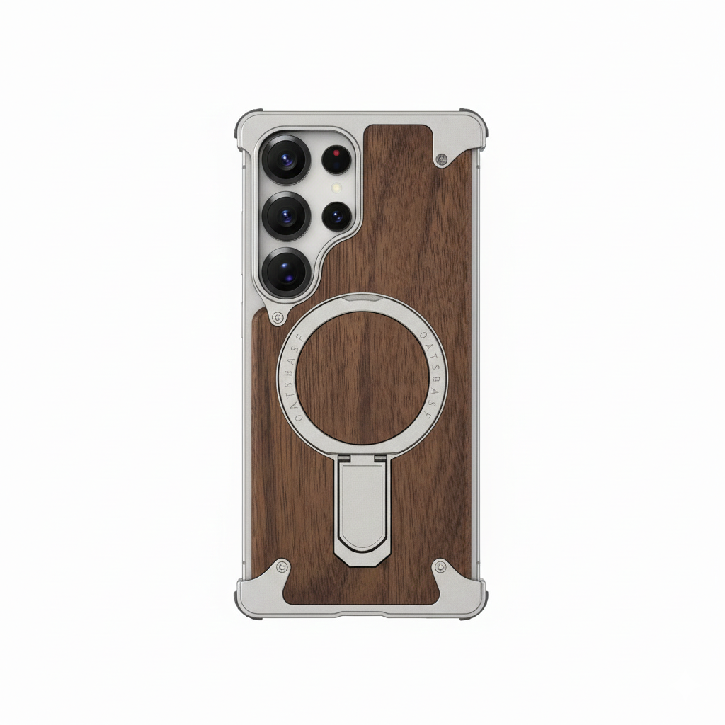 Diese halb umwickelte Handyhülle wurde speziell für das Samsung Galaxy S25 und S24 Ultra entwickelt und vereint elegantes Design mit praktischen Funktionen. Die Kombination aus natürlichem Holz und robuster Aluminiumlegierung sorgt für einen stilvollen Look und gleichzeitig zuverlässigen Schutz im Alltag.