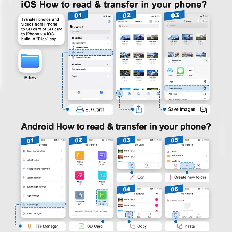 Der Kartenleser ermöglicht gleichzeitig Lesen und Schreiben von zwei Karten und benötigt keine zusätzlichen Treiber für verschiedene Betriebssysteme. Dank USB 3.0 Schnittstelle sind Datenübertragungen bis zu 10-mal schneller als bei herkömmlichen USB 2.0 Lesern, mit Übertragungsraten von bis zu 5Gbps. Dies verkürzt die Zeit beim Übertragen großer Dateien oder HD-Videos erheblich.