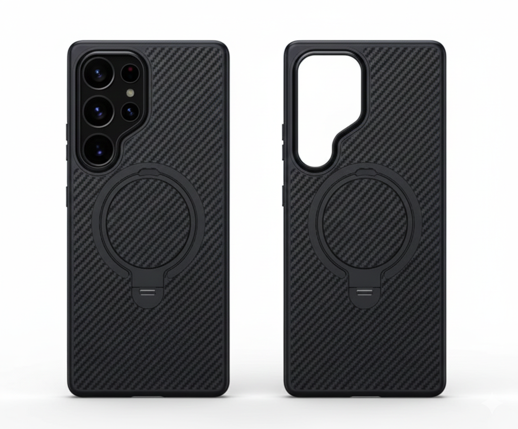 360° Magnet Carbon Hülle mit Ständer für Galaxy S25/S24