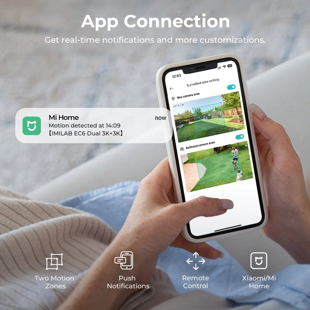 Über die App können Sie bis zu zwei Bewegungszonen festlegen, um gezielt Bereiche zu überwachen und bei erkannten Ereignissen sofort Push-Benachrichtigungen zu erhalten. Für die Speicherung der Videos steht Ihnen eine lokale MicroSD-Karte mit bis zu 256 GB zur Verfügung. Alternativ können Sie die optionale Cloud-Speicherung nutzen, die für neue Nutzer drei Monate kostenlos verfügbar ist.