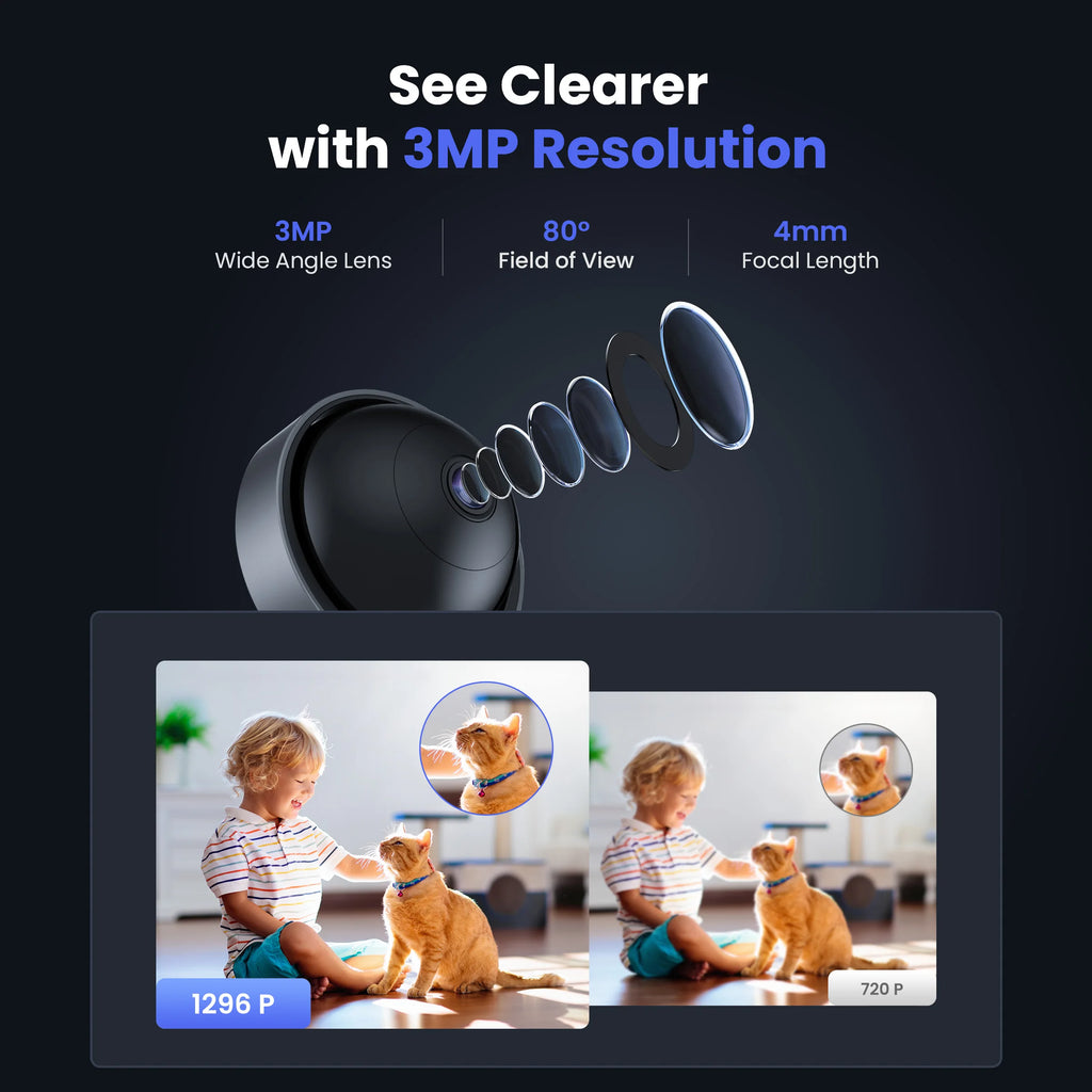 Diese WiFi Smart Security Kamera ist eine vielseitige Innen-IP-Kamera mit 3MP HD-Auflösung, ideal als Baby Monitor oder zur Überwachung Ihres Zuhauses. Sie liefert klare und detailreiche Aufnahmen, sodass jeder Moment lebendig eingefangen wird – von den ersten Schritten Ihres Kindes bis zu spielerischen Momenten.