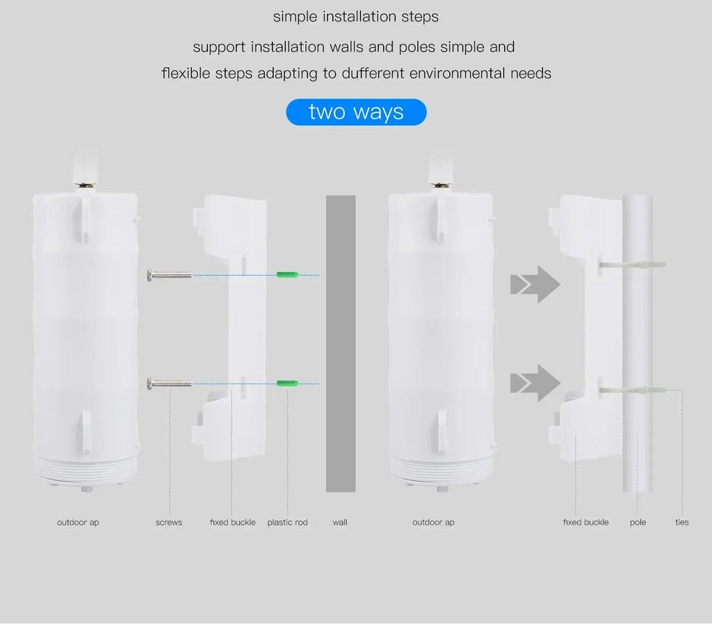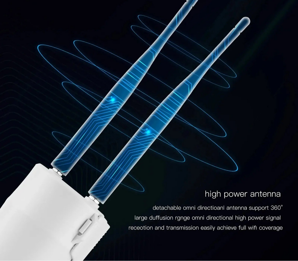 Die Stromversorgung erfolgt über 24V PoE, wodurch der Router bis zu 60 Meter entfernt installiert werden kann – ideal für Außenbereiche, in denen keine Steckdose verfügbar ist. Eine Repeater-Funktion erweitert zusätzlich bestehende Netzwerke durch verstärkte Signalabdeckung.