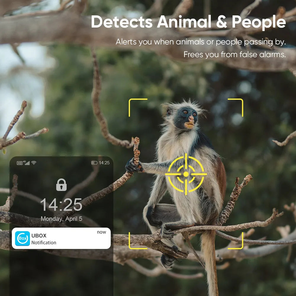 Über die UBox‑App (iOS/Android) steuern Sie die Kamera remote, empfangen Echtzeitalarme und greifen auf Live‑Streams zu. Zwei‑Wege‑Audio ermöglicht die Kommunikation mit Besuchern oder zur Abschreckung ungebetener Gäste.