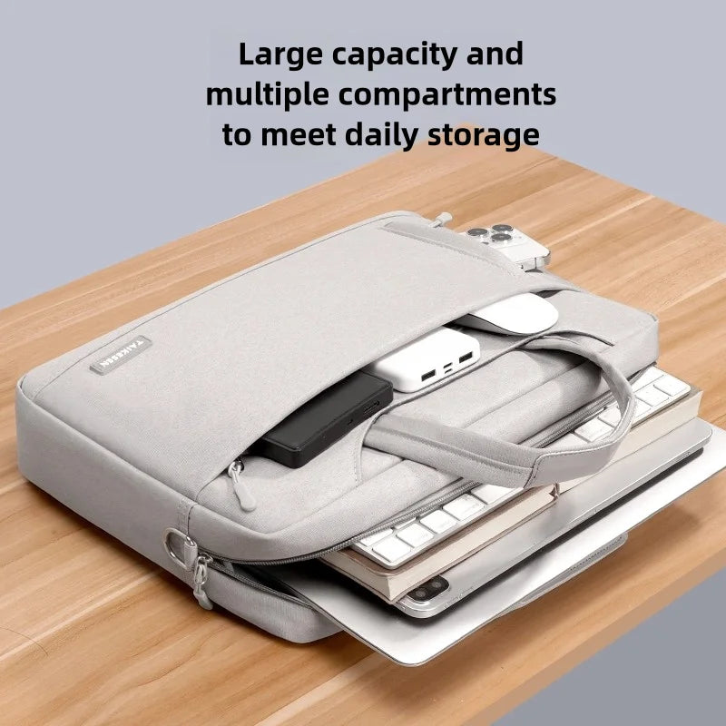 Die Business-Laptop-Tasche von TAIKESEN ist ein vielseitiger Begleiter für alle, die Flexibilität und Schutz für ihre Geräte suchen. Gefertigt aus strapazierfähigem Polyester, bietet diese Tasche optimalen Schutz für eine Vielzahl von MacBook-Modellen – darunter MacBook Pro 13, 15, 14, 16 Zoll sowie MacBook Air 11, 12 und 13 Zoll. Durch das Multi-Use-Design eignet sie sich nicht nur als klassische Laptoptasche, sondern auch als praktische Kurier- oder Umhängetasche.