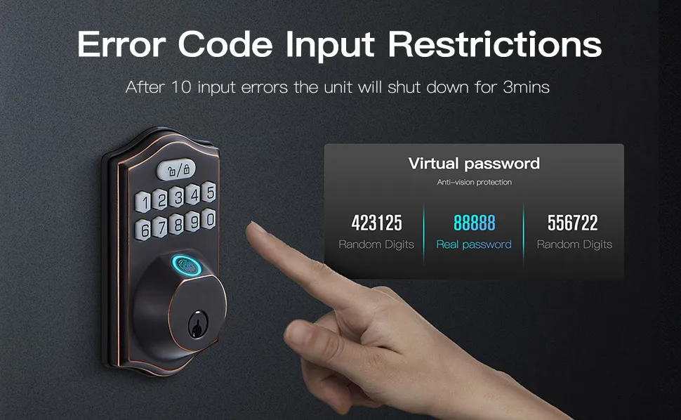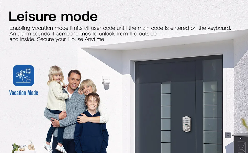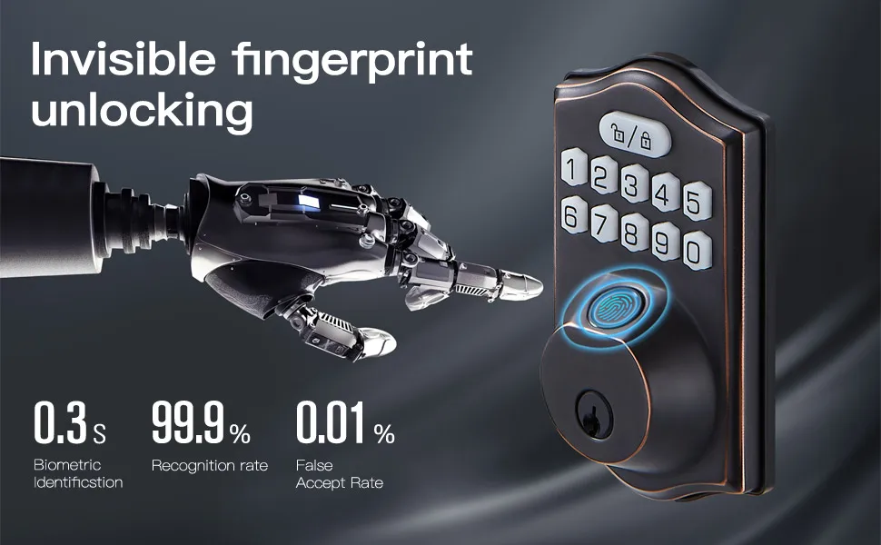 Das Schloss verfügt über ein automatisches Verriegelungssystem, das sich nach 10 bis 99 Sekunden selbst verriegelt. Damit wird sichergestellt, dass Ihre Tür immer sicher verschlossen ist, ohne dass Sie daran denken müssen. Die robuste Bauweise aus Aluminiumlegierung und Zinklegierung erfüllt die wetterfesten Standards ANSI Level 3 und IP65, sodass das Schloss auch bei Regen und anderen Witterungseinflüssen zuverlässig funktioniert.