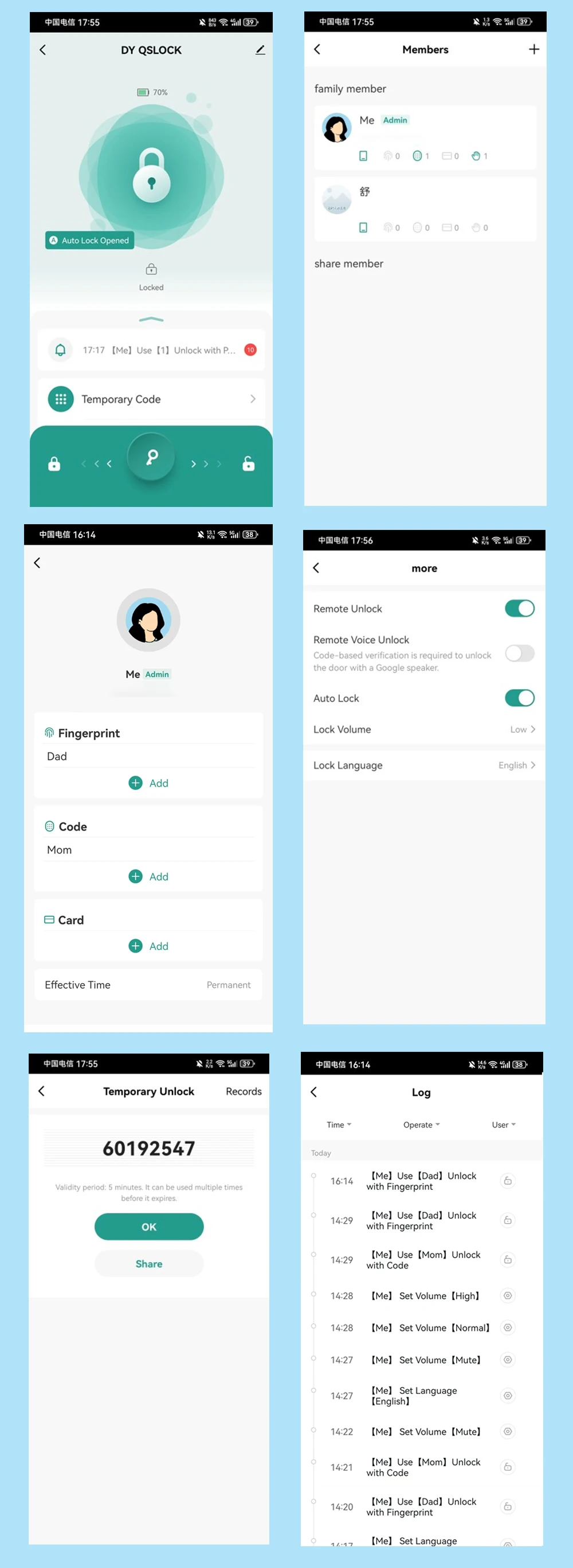 Entsperrmethoden: Fingerabdruck, Passwort, mechanischer Schlüssel, App