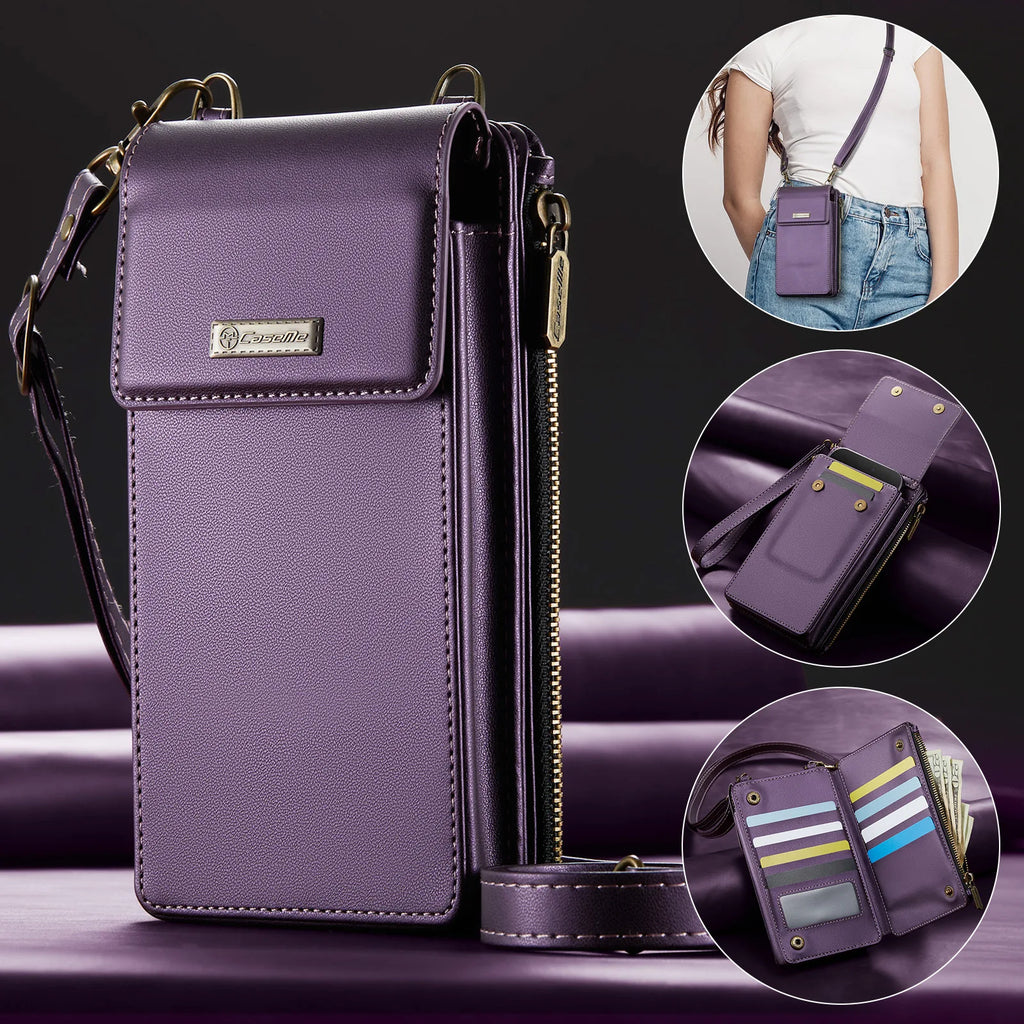 Die Tasche verfügt über 10 praktische Kartenfächer, ein separates Handyfach sowie eine sichere Reißverschlusstasche für Bargeld, Schlüssel oder kleine Gegenstände. Ideal für den Alltag, Reisen, Festivals oder den Stadtbummel – ganz ohne zusätzliches Portemonnaie.