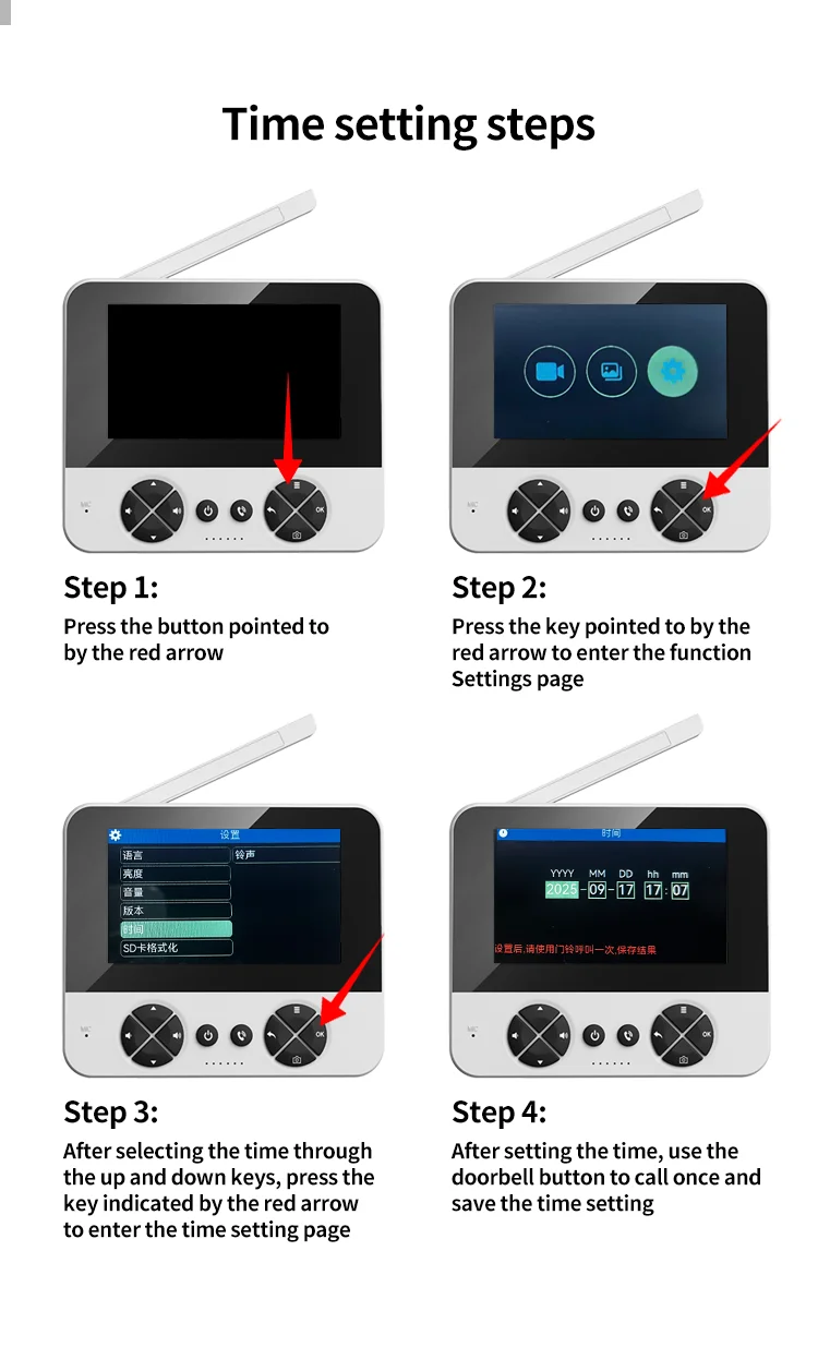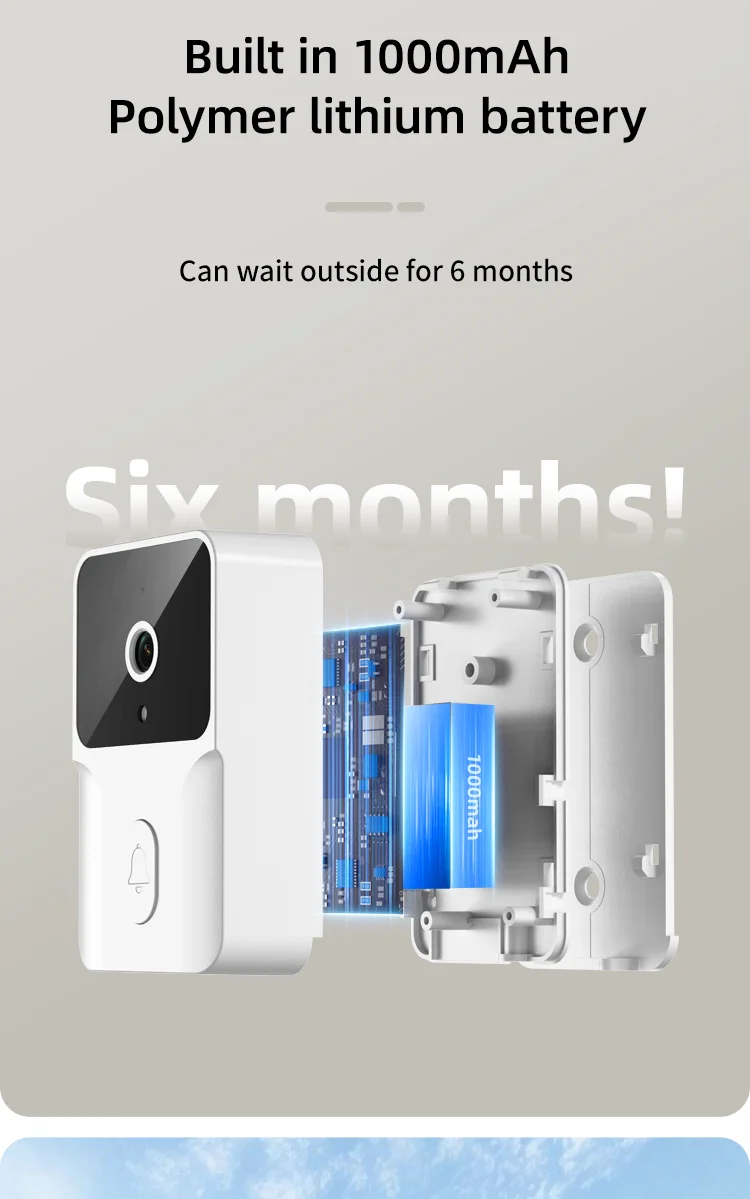 Das System arbeitet kabellos und benötigt keine komplizierte Verkabelung. Die Stromversorgung erfolgt über eine integrierte 1000 mAh Polymerbatterie mit einem Standby von bis zu 6 Monaten. Die Türklingel unterstützt TF-Karten bis zu 256 GB Speicher (nicht im Lieferumfang enthalten) zum Speichern von Fotos und Videos. Zudem können Sie Gäste-Nachrichten ansehen, was die Bedienung noch komfortabler macht.