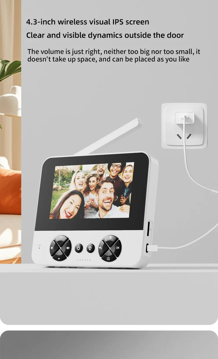 Die DANMINI drahtlose Video-Türklingel mit 4,3-Zoll-Farbdisplay bietet eine moderne und benutzerfreundliche Lösung für die Sicherheit und Kommunikation an Ihrem Hauseingang. Diese Türklingel ist ideal für Familien, Wohnungen, Villen oder Außentüren geeignet. Dank des mitgelieferten 3M-Klebepads lässt sie sich ohne Bohren einfach an der Tür befestigen und mit dem zugehörigen Bildschirm verbinden.