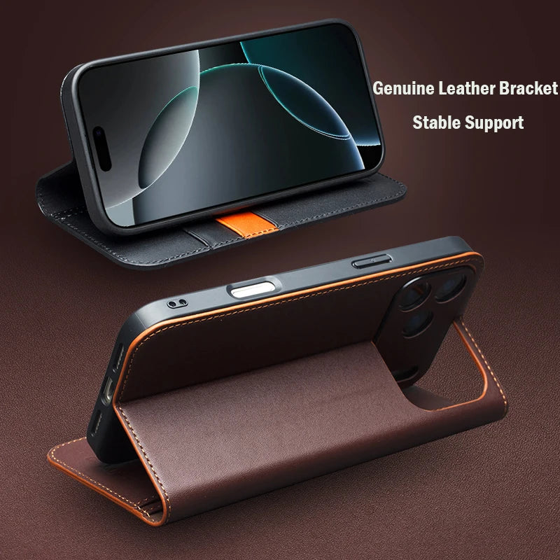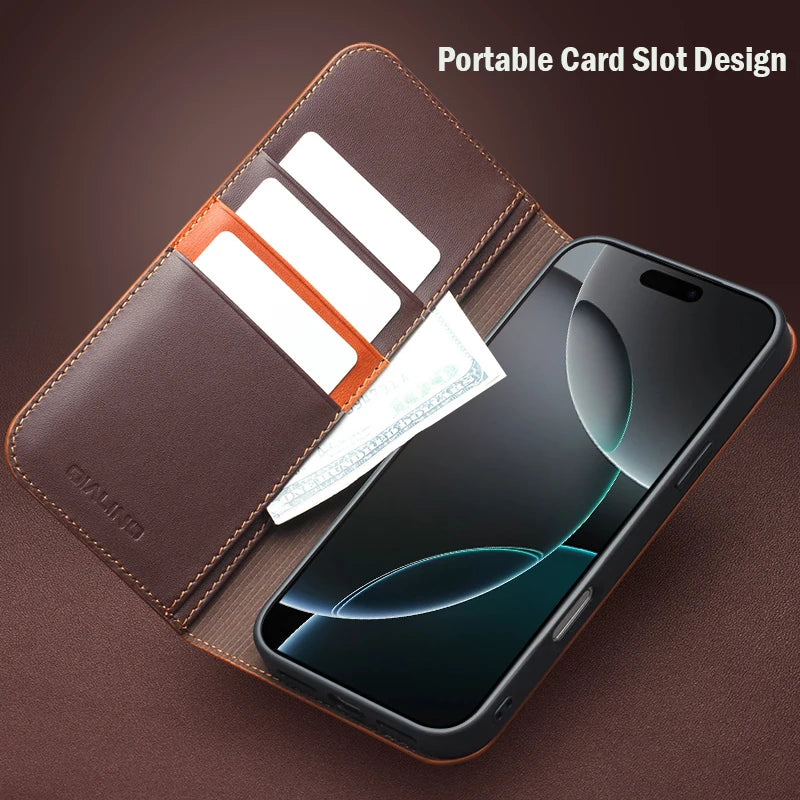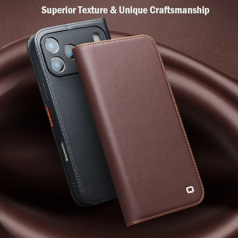 Edle Leder Flip-Hülle für iPhone 17 Pro mit Kartenfach