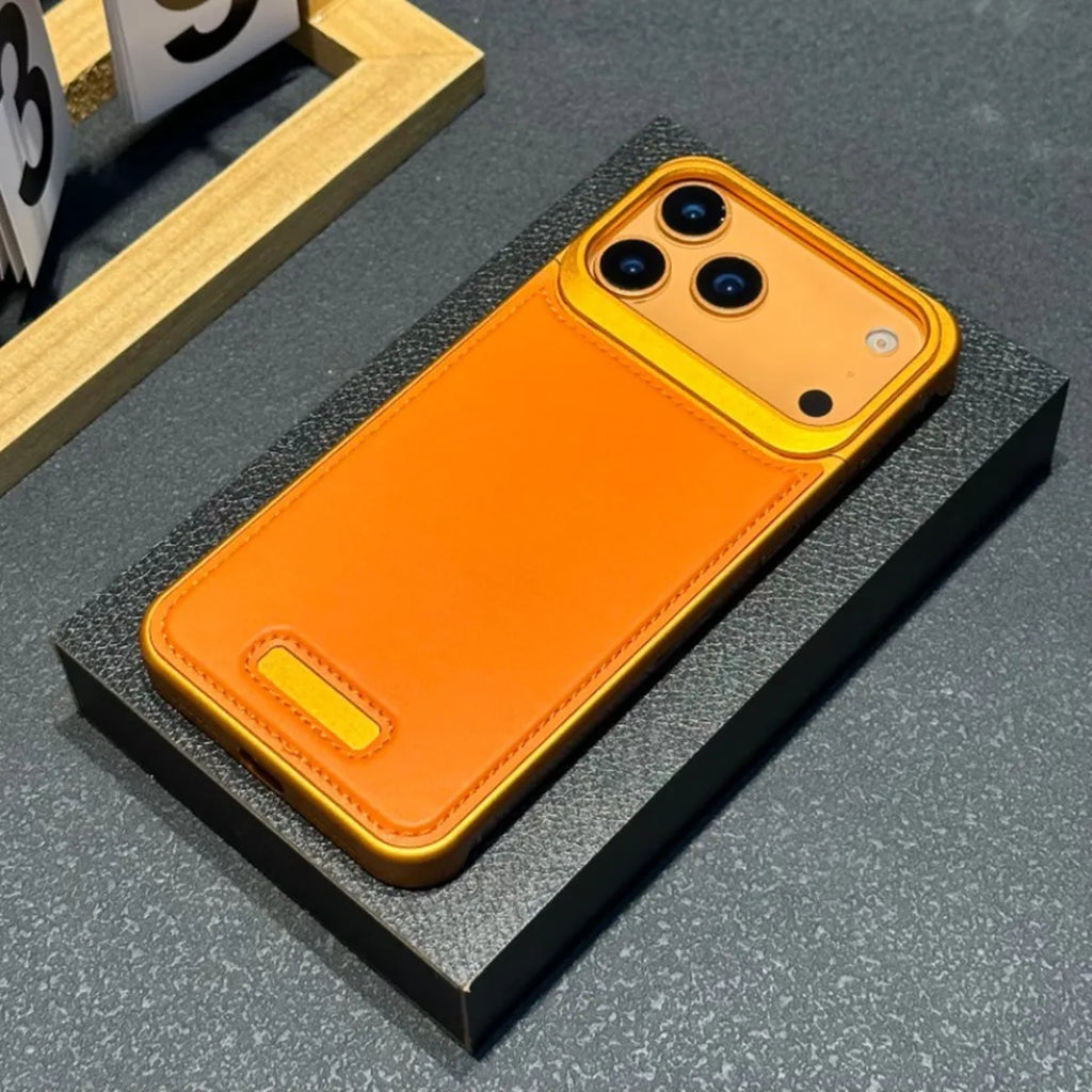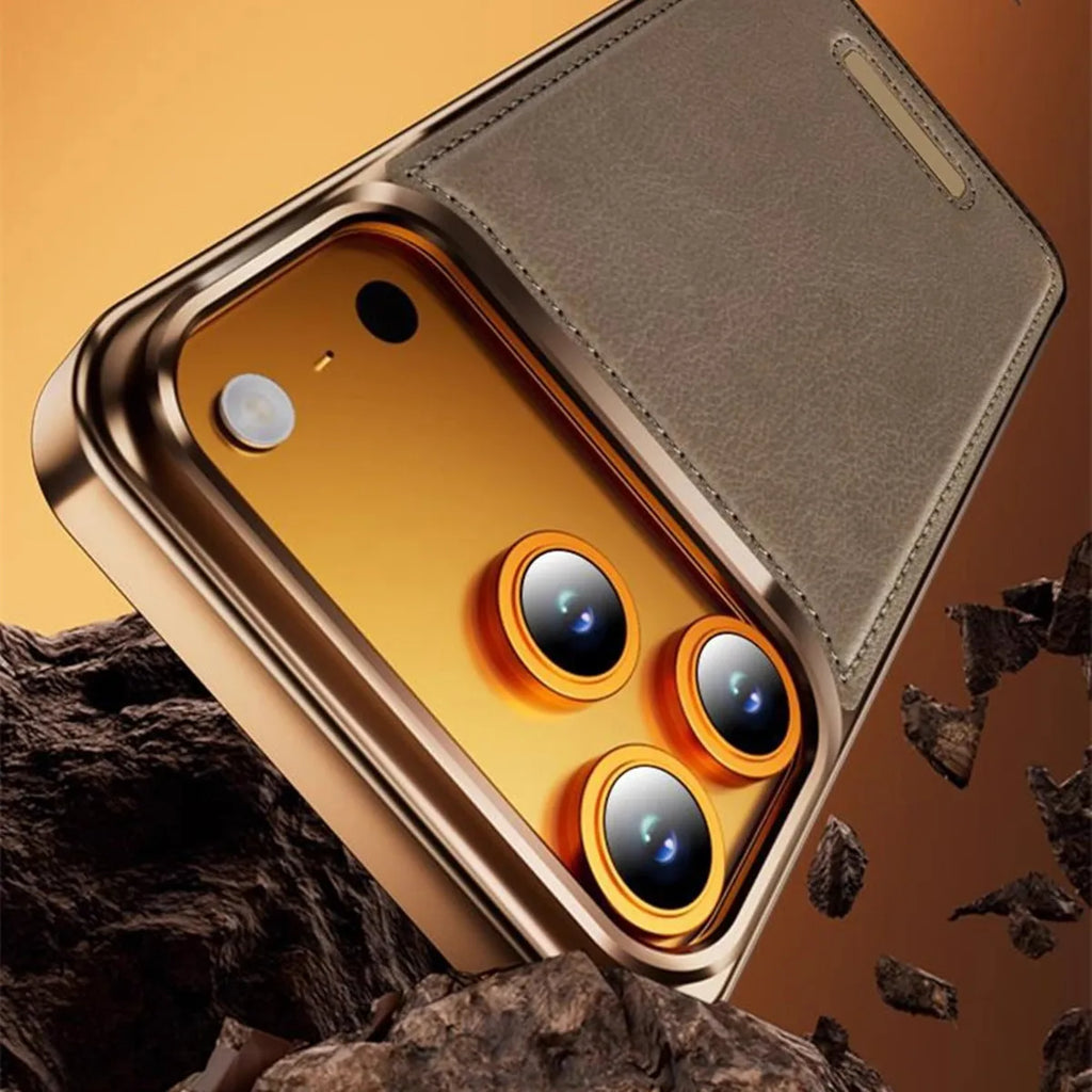 Magnetische Leder Metall Hülle für iPhone 17 Pro Max – Stoßfestes Premium Case aus Aluminium
