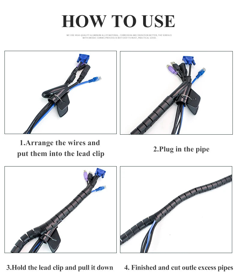 Der flexible Spiraldesign ermöglicht ein einfaches Einführen und Anpassen an Kabel unterschiedlicher Größen. Mit einer Länge von 5 oder 10 Metern können Kabel nach Bedarf gekürzt oder kombiniert werden. Das robuste Material sorgt für Langlebigkeit und schützt Kabel vor Abrieb, Knicken und Verheddern. Durch die Spiralstruktur lassen sich Kabel sauber führen, während sie gleichzeitig leicht entnommen oder hinzugefügt werden können.