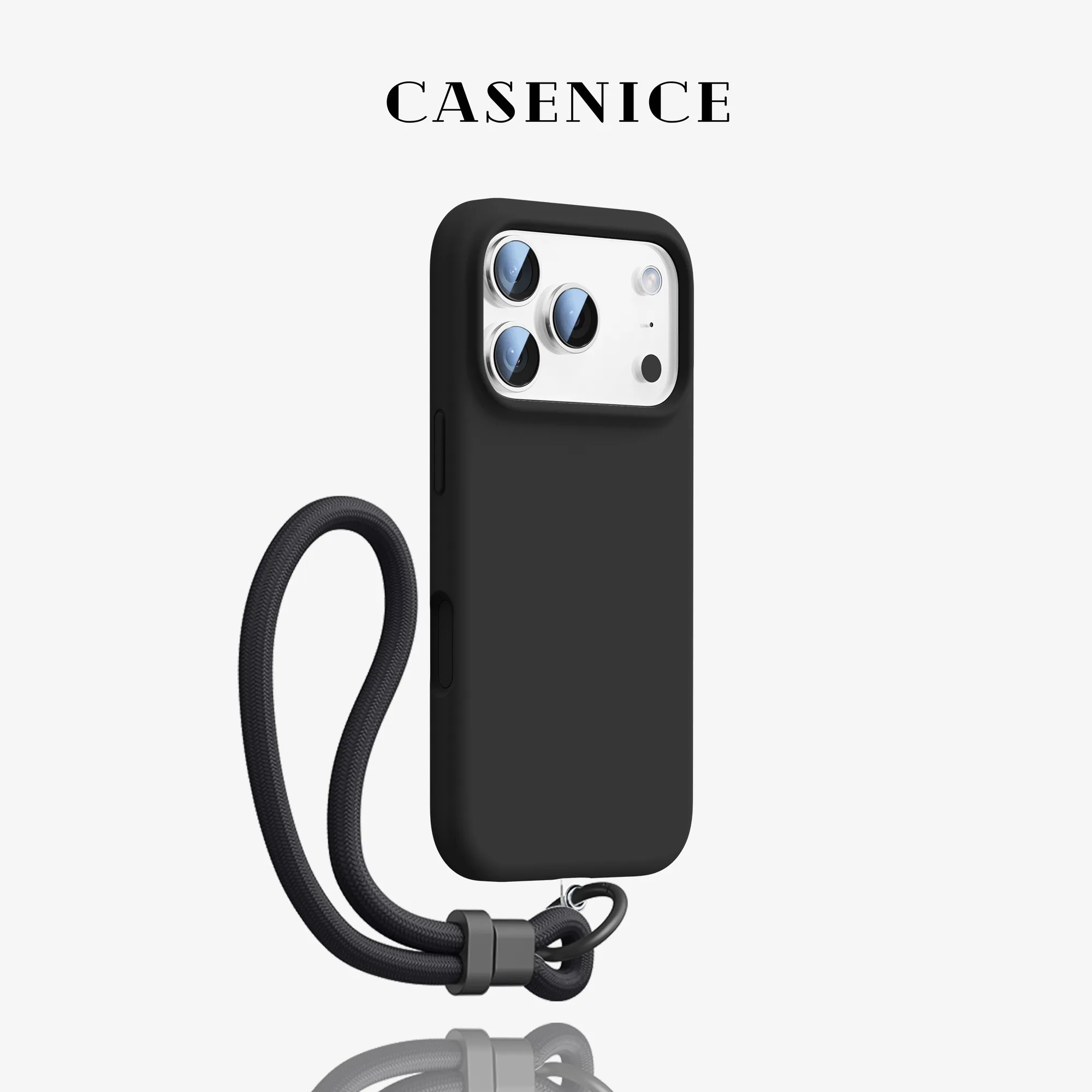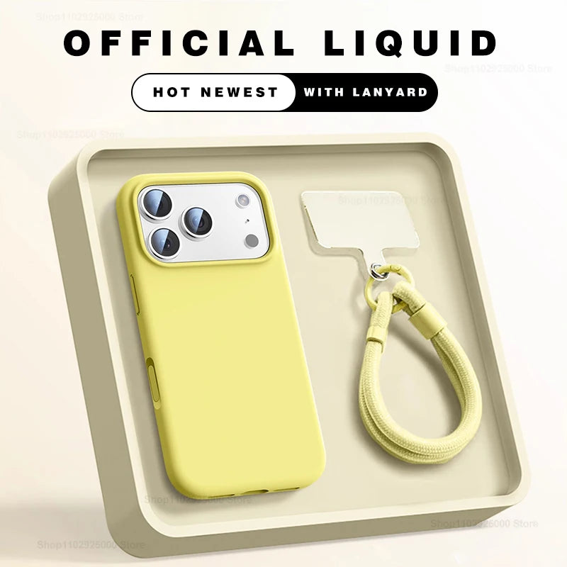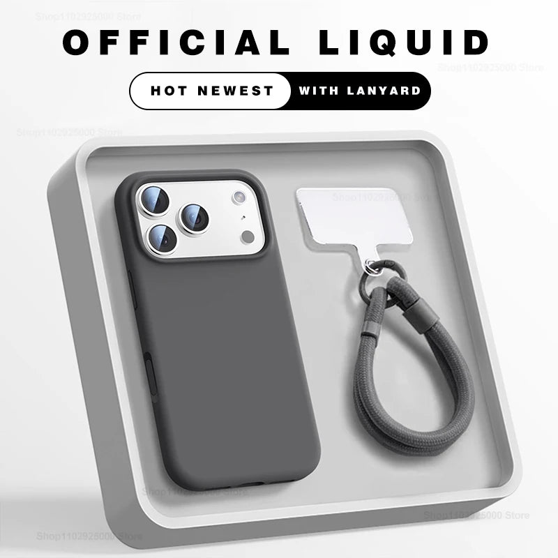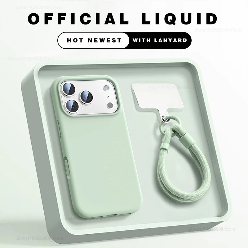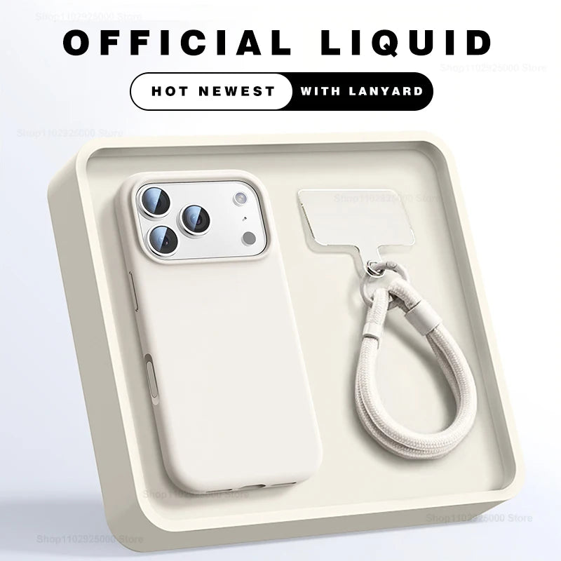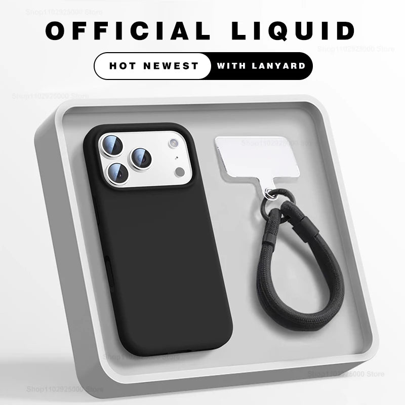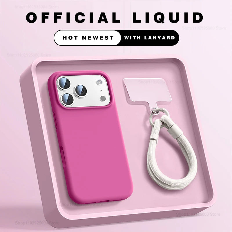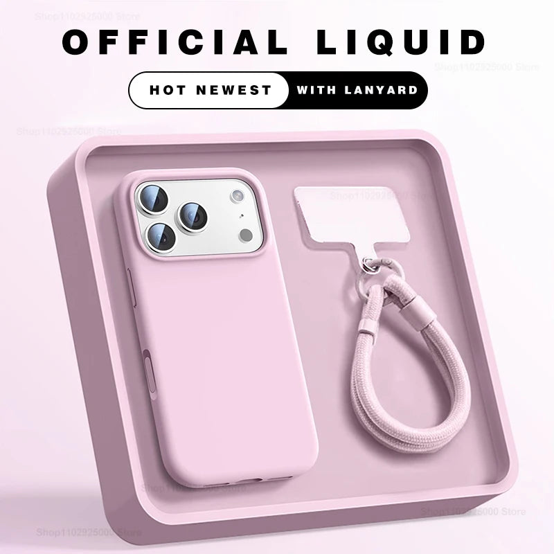 Stylische Flüssigsilikonhülle mit Lanyard – stoßfester Rundumschutz für iPhone 17, 16 Pro Max.
