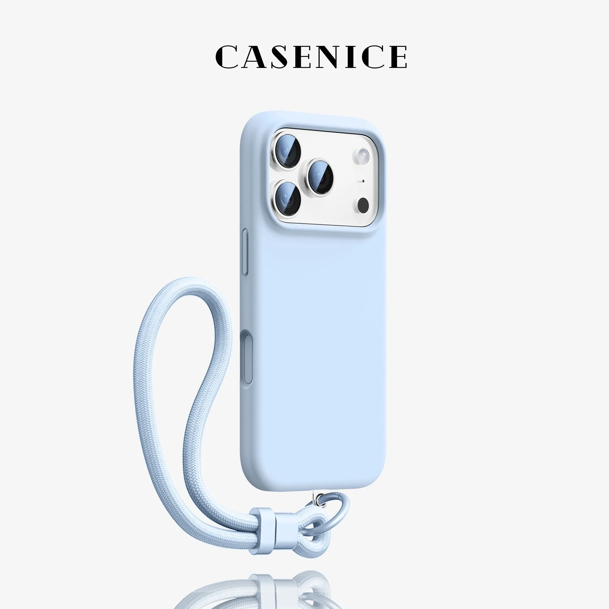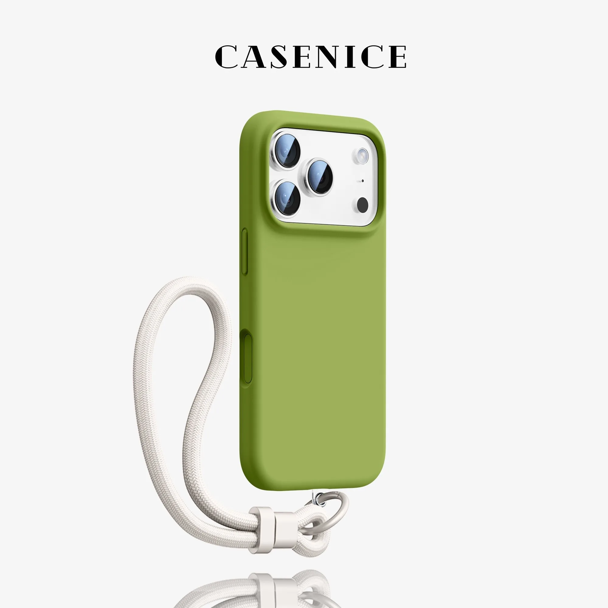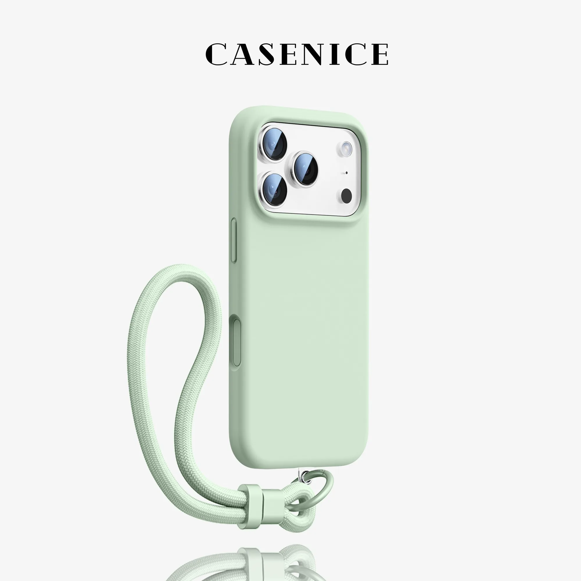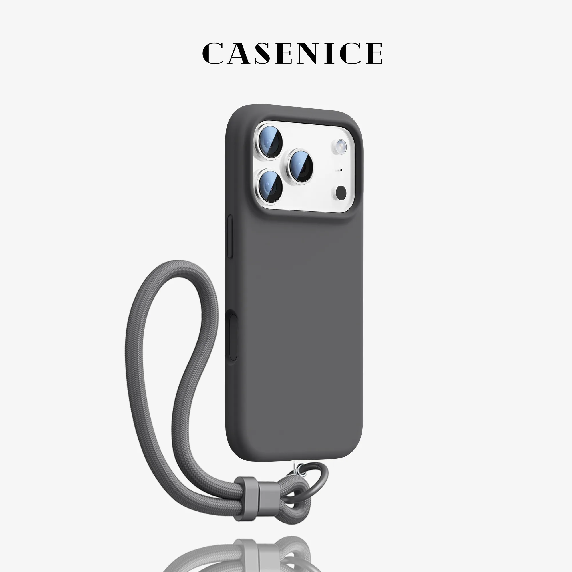 Stylische Flüssigsilikonhülle mit Lanyard – stoßfester Rundumschutz für iPhone 17, 16 Pro Max.
