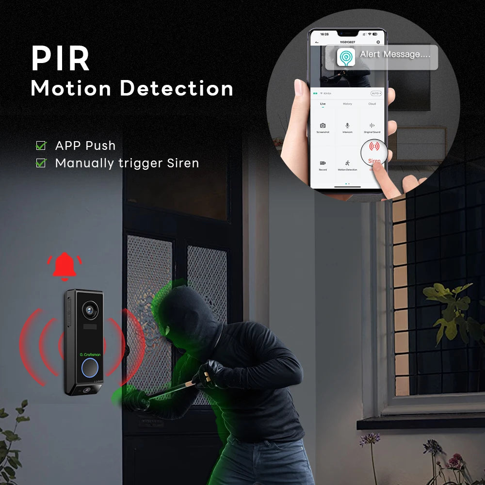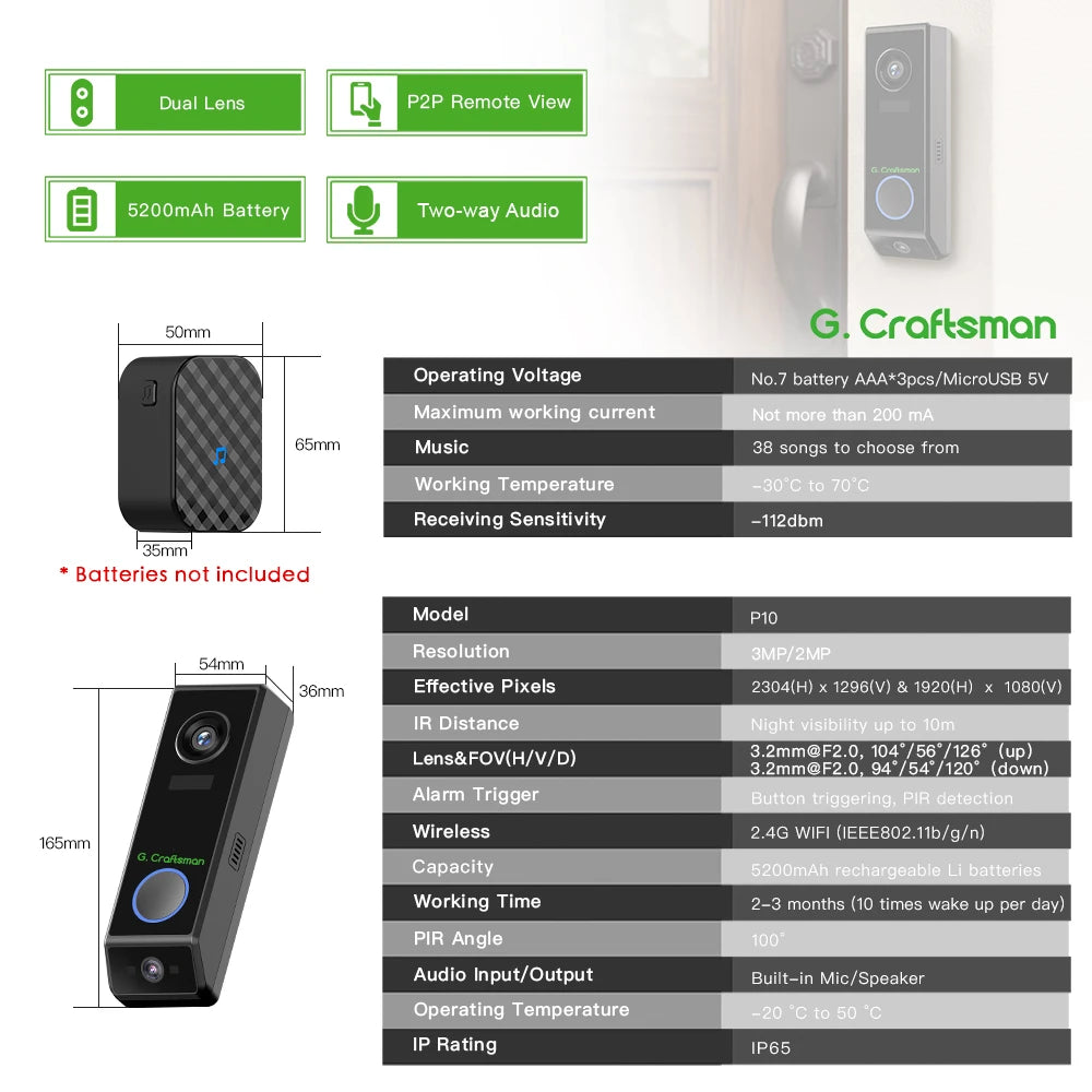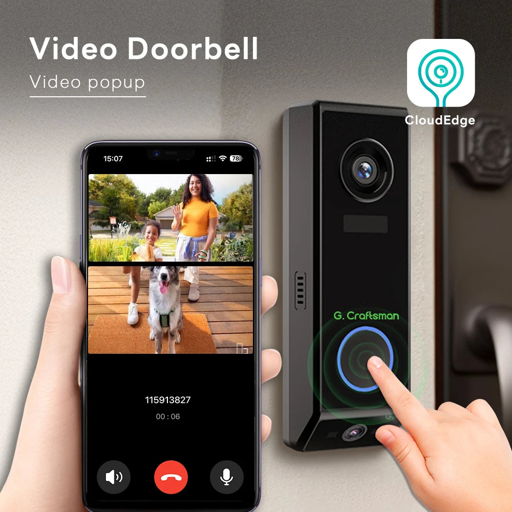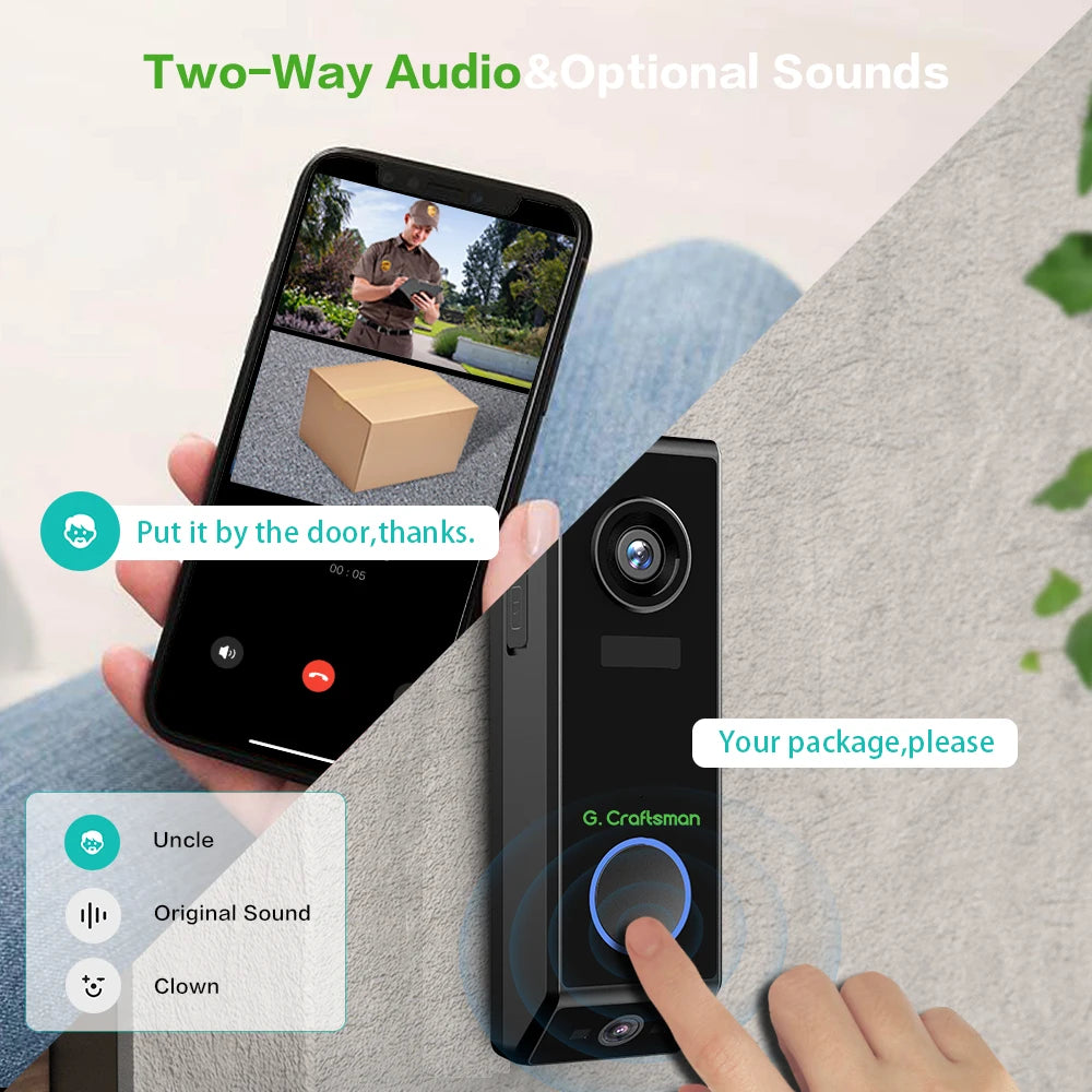 Die G.Craftsman Drahtlose WiFi-Audio-Türklingel ist eine intelligente Lösung für moderne Hausüberwachung und Besucherkommunikation. Mit Unterstützung für Alexa und Google Assistant fügt sie sich nahtlos in Ihr Smart-Home-System ein. Diese Türklingel funktioniert kabellos und wird mit trockenen Batterien betrieben – ideal für einfache und flexible Installationen, ohne lästiges Bohren oder Verkabeln.