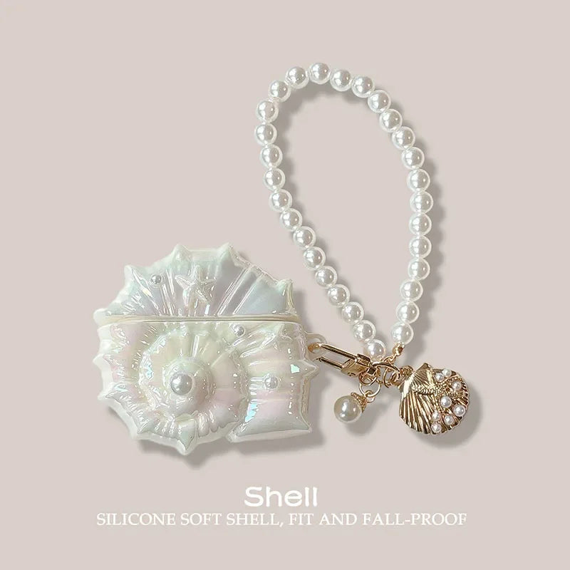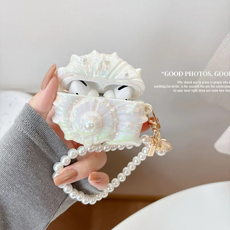 Glitzer-Muschel Airpods Hülle mit Anhänger Schutzcase