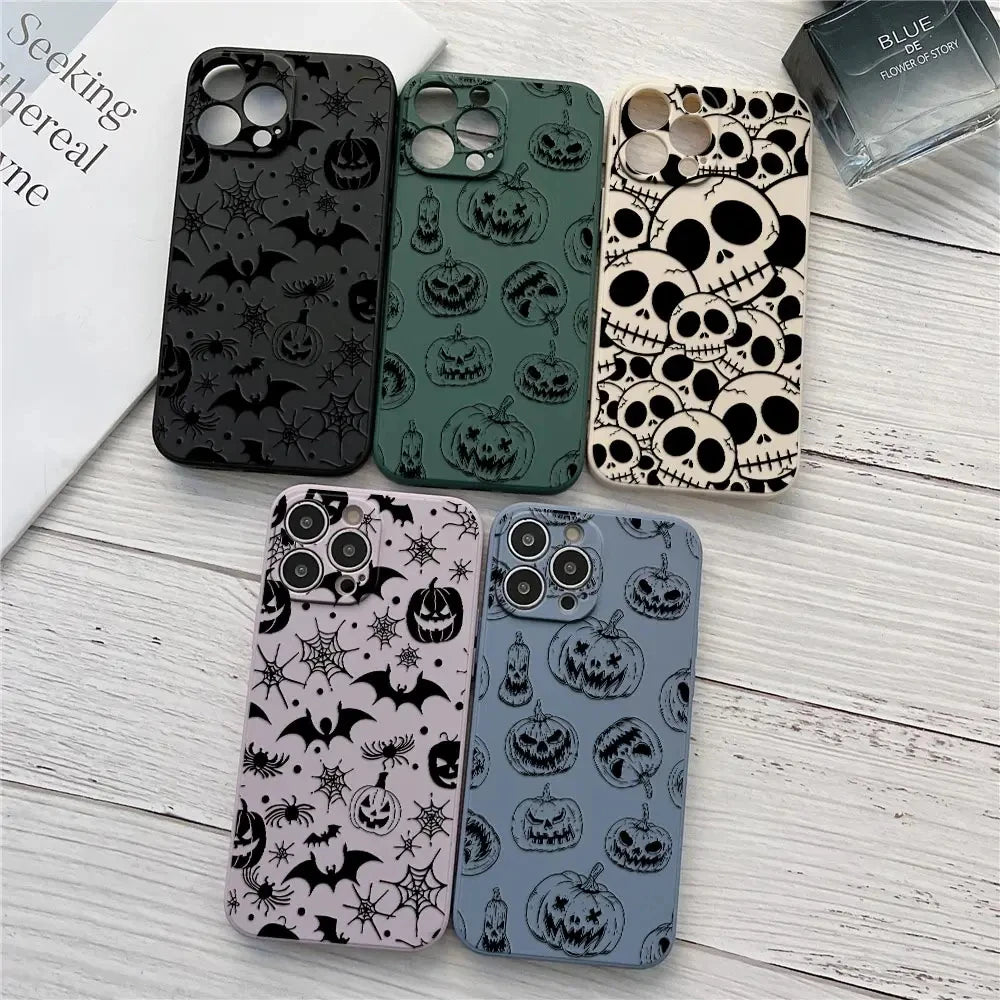 Schwarze Halloween Horror Art Handyhülle aus Silikon für iPhone 17 bis XS – Gruseliges Design mit perfektem Schutz