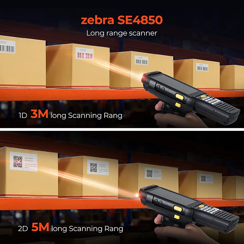Je nach Variante ist ein Zebra SE4710 oder SE4850 Barcode-Scanner integriert. Beide Module unterstützen die Erkennung von 1D- und 2D-Barcodes mit hoher Geschwindigkeit (bis zu 200 Scans pro Sekunde). Das Gerät eignet sich für das Scannen auf größere Entfernungen – perfekt für Anwendungen im Hochregallager oder in der Versandlogistik.