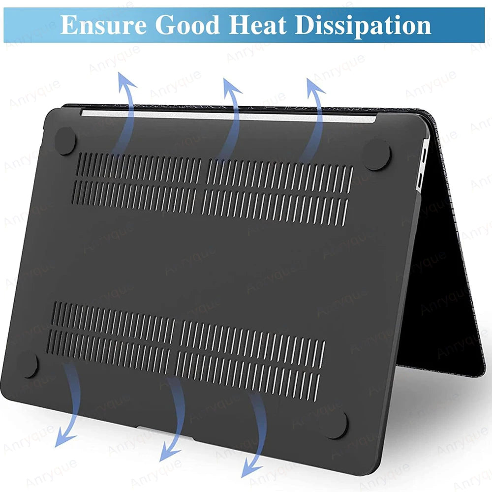 Dank präziser Ausschnitte haben Sie vollständigen Zugriff auf alle Anschlüsse, Tasten und Funktionen Ihres Laptops. Die Unterseite ist mit vier rutschfesten Gummipads ausgestattet, die für Stabilität und eine effiziente Wärmeableitung sorgen. Das Design ist einfarbig und modern – ohne ausgeschnittenes Apple-Logo – und wird mit fortschrittlicher 3D-Farbdrucktechnik hergestellt. Dabei kommt importierte, umweltfreundliche ECO-UV-Tinte zum Einsatz, die für brillante, langlebige Farben sorgt.