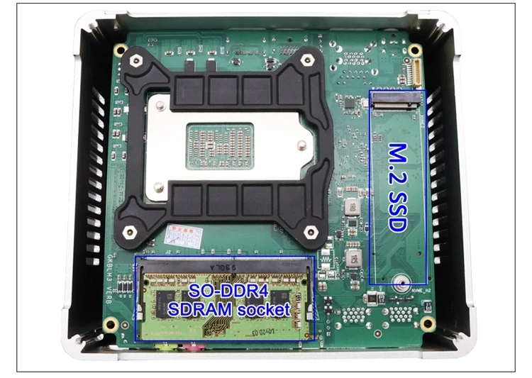Dank der Unterstützung für Dual DDR4 RAM-Steckplätze ist eine Aufrüstung auf bis zu 64 GB möglich. Der Speicher kann flexibel über M.2 SATA SSD und NVMe SSD erweitert werden. Eine herkömmliche HDD wird nicht unterstützt, was die Leistung zusätzlich steigert.