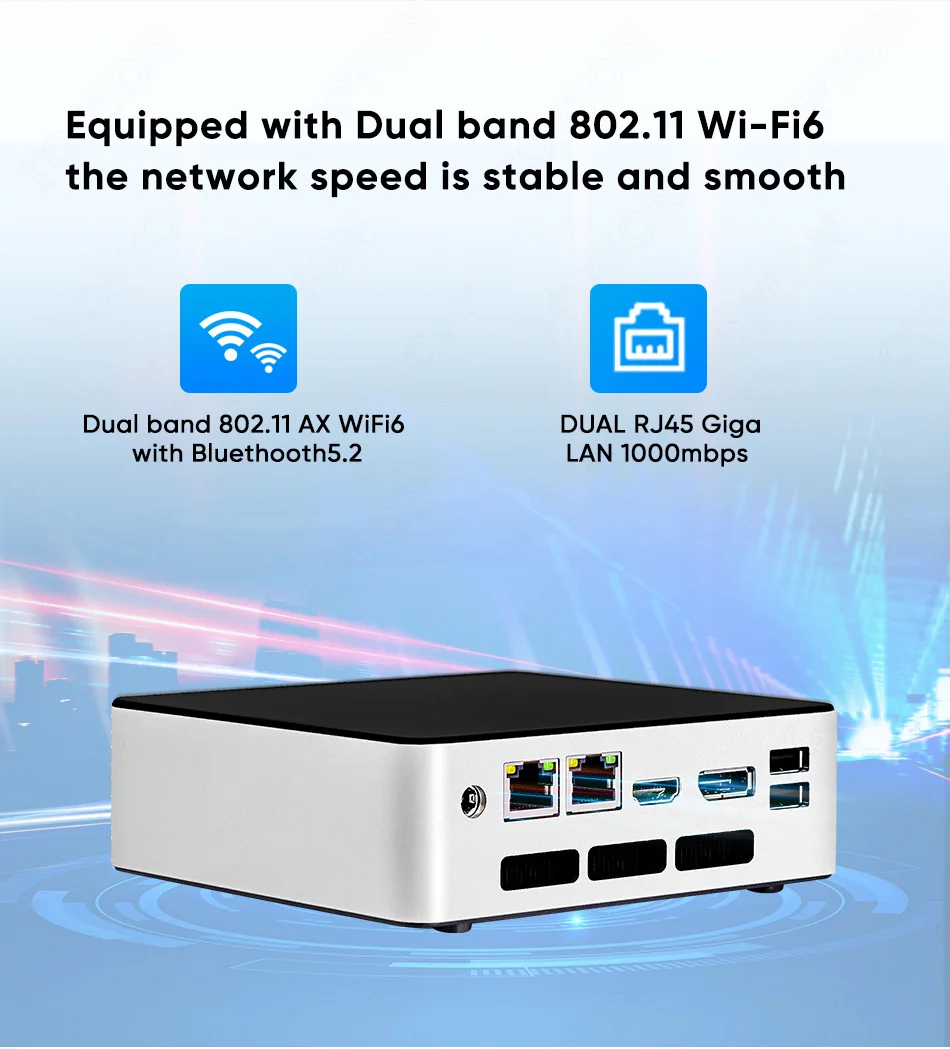 Netzwerk: 2x Gigabit LAN, WiFi6, Bluetooth 5.2