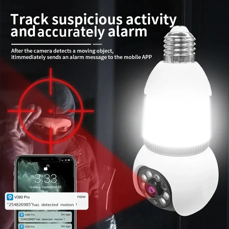 Die 8MP LED Glühbirnen Kamera bietet hochauflösende Videoüberwachung mit einer Bildqualität von 8,0 Megapixeln für klare und detaillierte Aufnahmen. Dank der integrierten Farb-Nachtsicht können Sie auch bei schlechten Lichtverhältnissen farbige und scharfe Bilder erhalten. Die Kamera verfügt über eine intelligente Menschenerkennung, die Bewegungen automatisch erkennt und Sie sofort alarmiert, wenn sich jemand im Sichtfeld der Kamera bewegt.