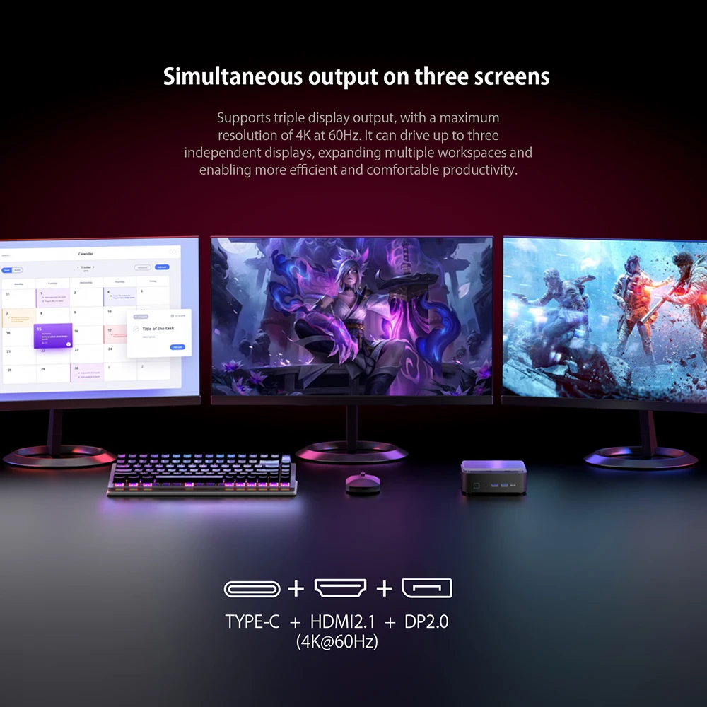 Der interne Speicher von 512 GB bietet ausreichend Platz für Ihre wichtigsten Daten, Programme und Spiele, während die Kompaktheit des Mini PCs ihn besonders platzsparend und vielseitig einsetzbar macht. Dank WiFi 6 und Bluetooth 5.2 ist eine schnelle und stabile Verbindung zu Netzwerken und Peripheriegeräten gewährleistet. Für die Bildausgabe stehen HDMI und DisplayPort zur Verfügung, die eine hohe Auflösung und flüssige Darstellung ermöglichen.