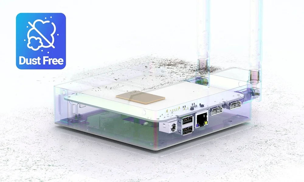 Das Gerät ist lüfterlos konstruiert, wodurch es nahezu geräuschlos arbeitet und somit perfekt für ruhige Arbeitsumgebungen geeignet ist. Die Betriebstemperatur liegt zwischen 0 und 50 °C, bei einer Luftfeuchtigkeit von 5 bis 85 %. Der Mini-PC unterstützt außerdem die VESA-Montage, sodass er platzsparend an Monitoren oder Wänden befestigt werden kann.