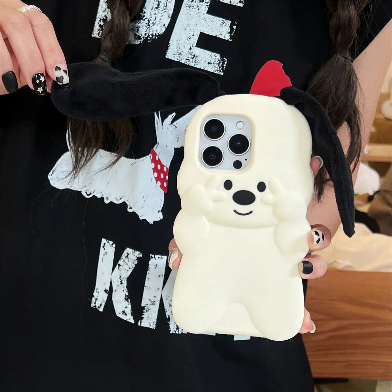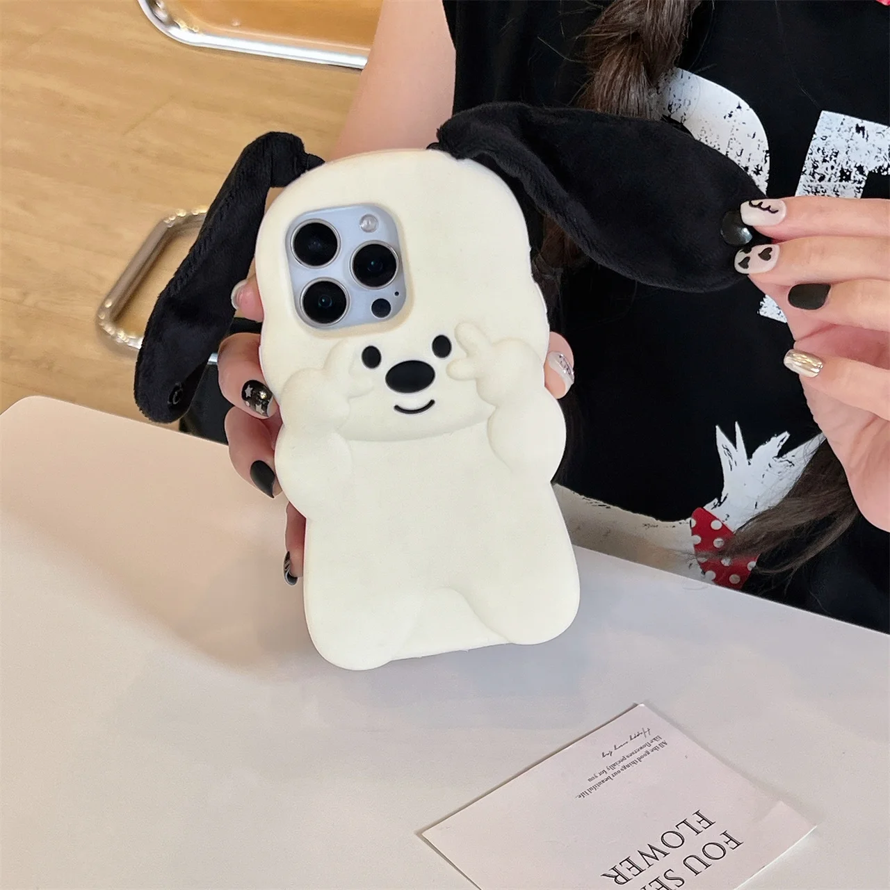 3D Cartoon Hund Handyhülle mit langen Ohren für iPhone – Weiches Silikon und stoßfester Schutz mit Handschlaufe