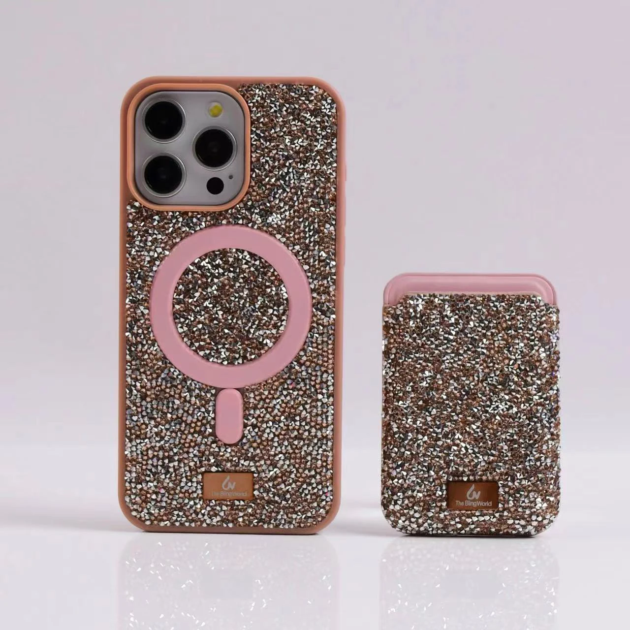 Luxuriöse Strass-Glitzerhülle mit Magnetkarte für iPhone 17 Serie