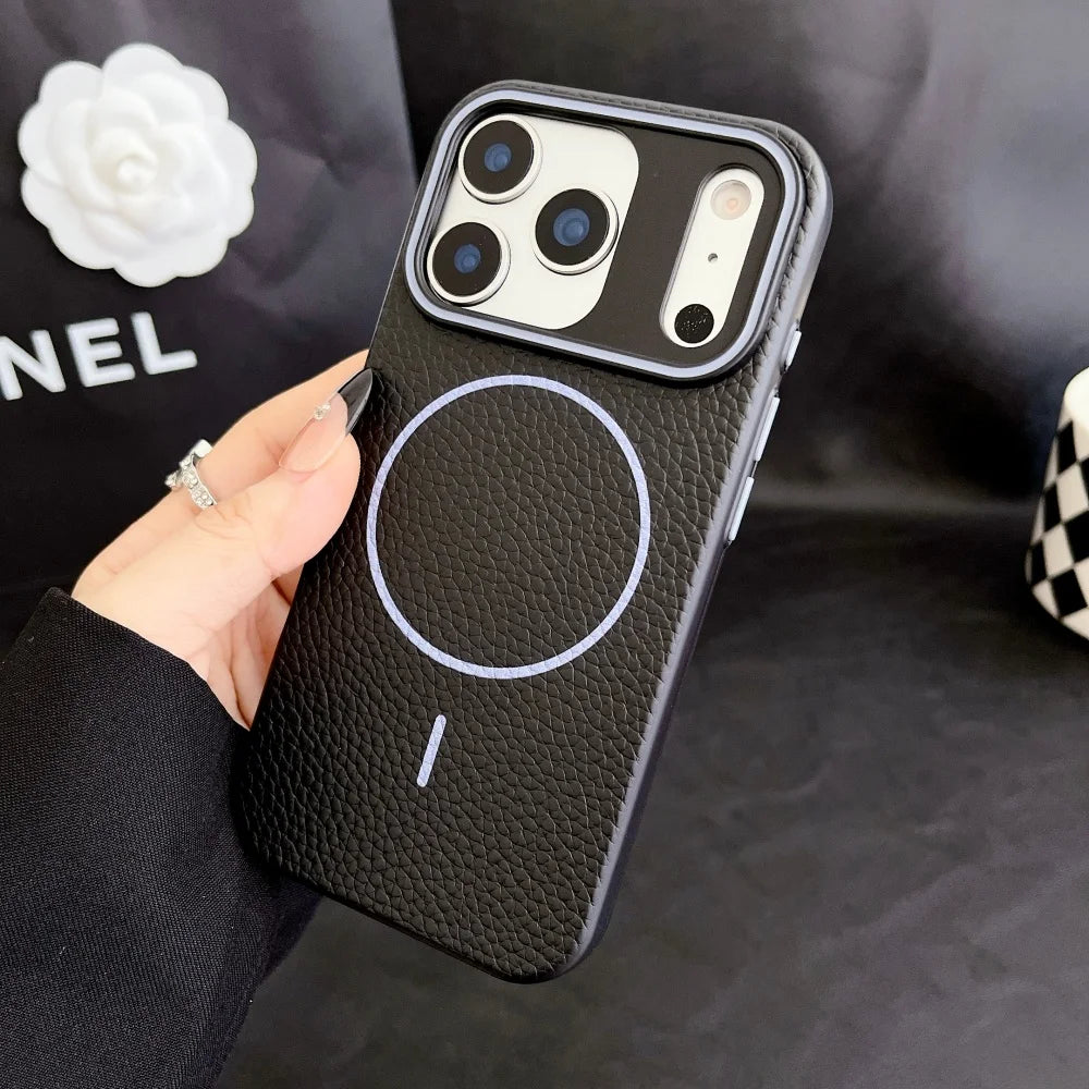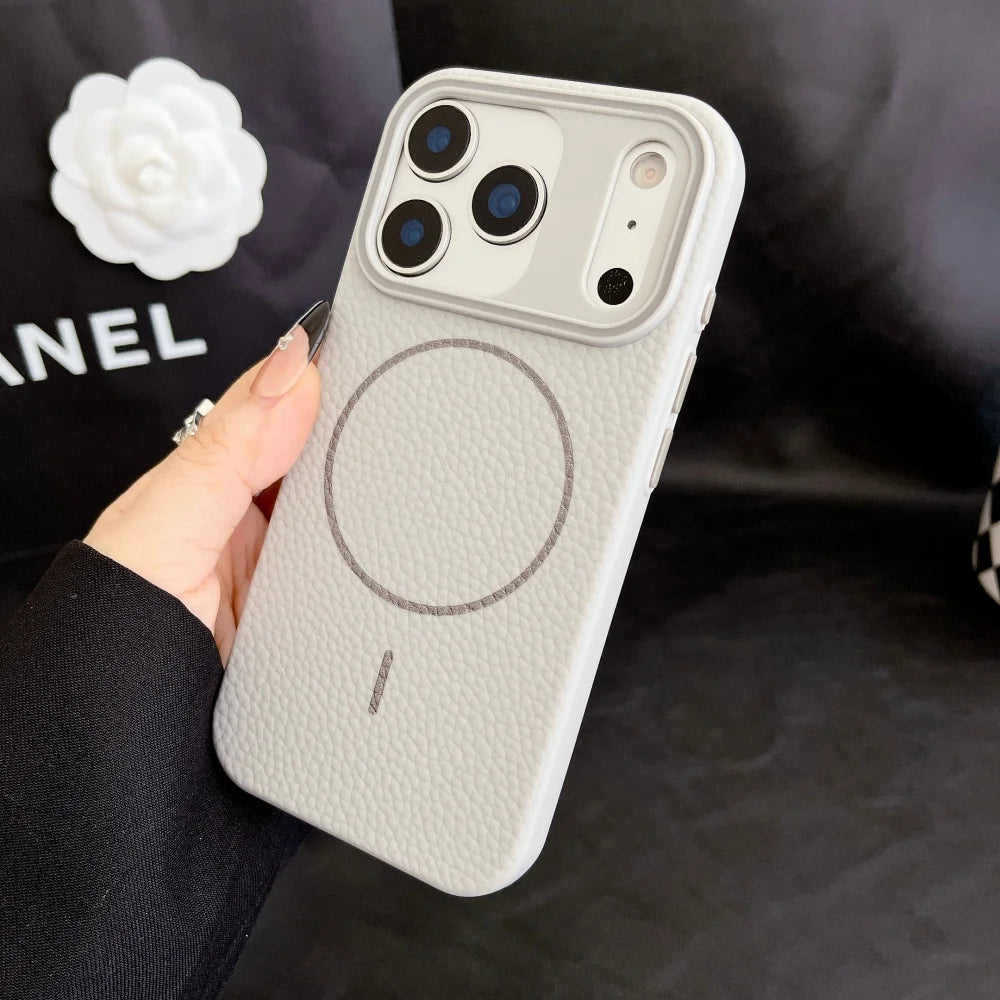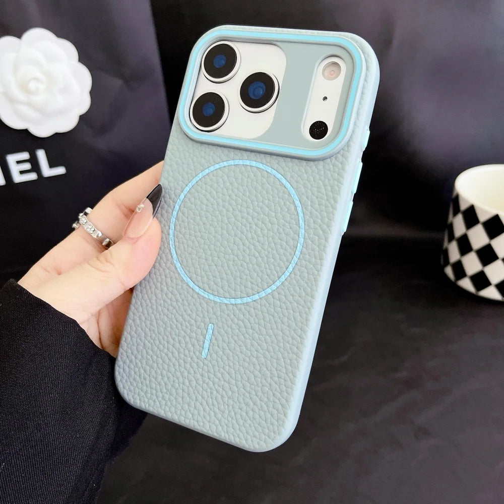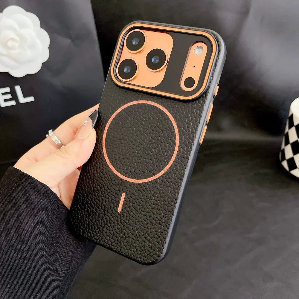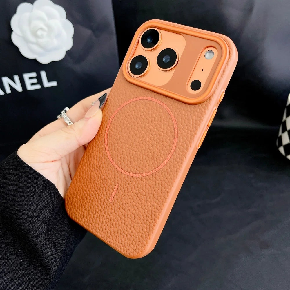 Luxuriöse Leder-Magsafe-Hülle für iPhone mit magnetischem TPU Schutz