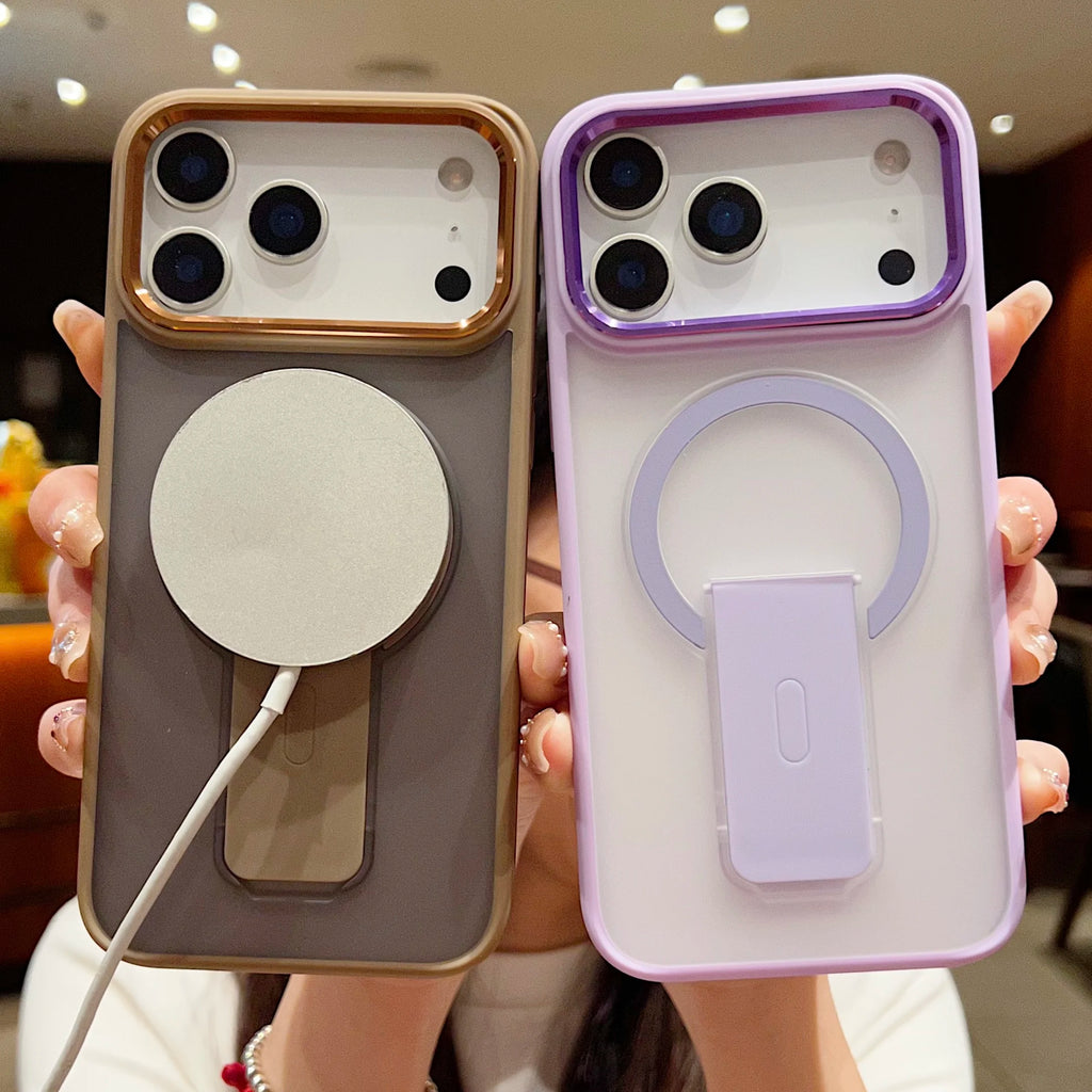 Luxuriöse magnetische Hülle mit unsichtbarem Kickstand für iPhone 17, 16, 15, 14, 13, 12, 11 Pro Max – matte Rückseite, MagSafe-kompatibel