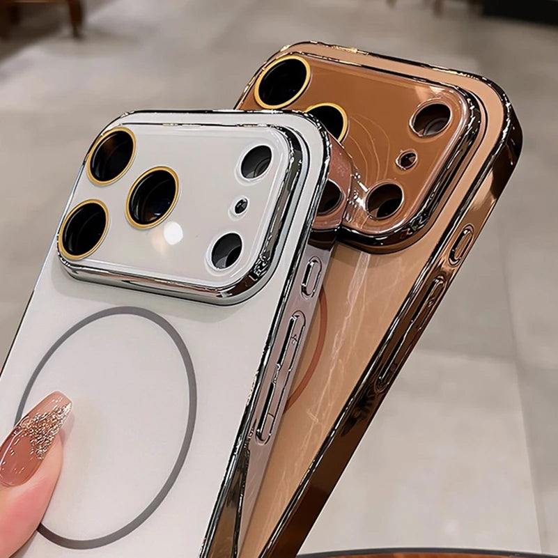 Magnetische Slim Magsafe Hülle mit Glas Rückseite und Kameraschutz – schlank, robust und stilvoll
