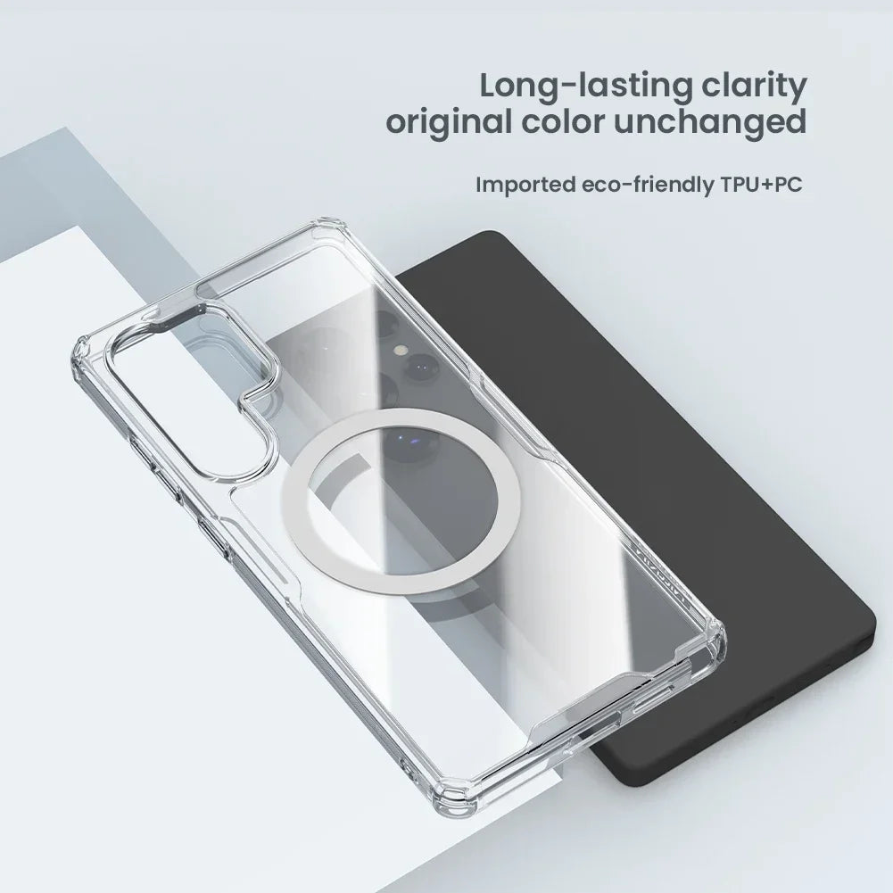 Die Nature Pro Magnetische Hülle wurde speziell für das Samsung Galaxy S25 Ultra entwickelt. Hergestellt aus hochwertigem TPU und PC bietet die Hülle optimalen Schutz gegen Stöße, Kratzer und alltägliche Abnutzung. Das transparente Design bewahrt die ursprüngliche Optik des Smartphones, während der robuste Rahmen für zusätzliche Stabilität sorgt.