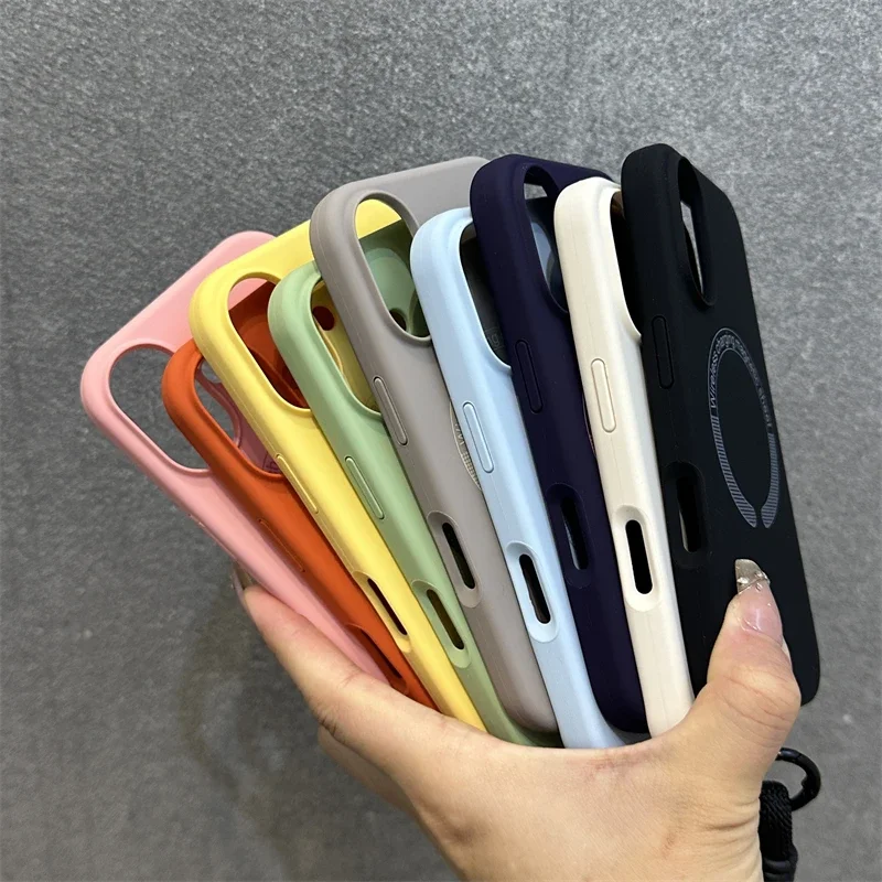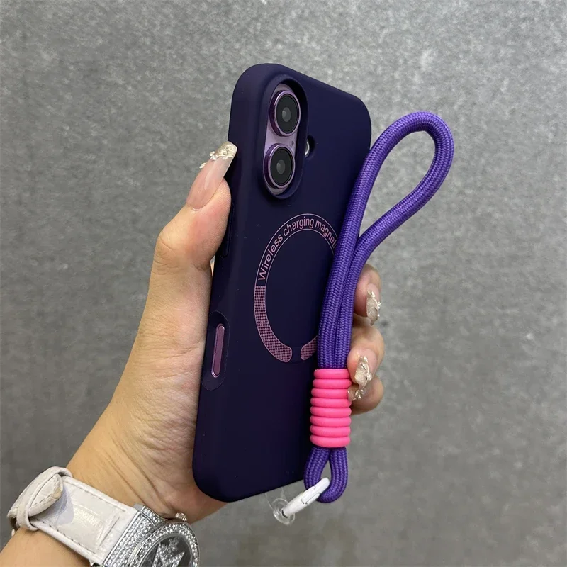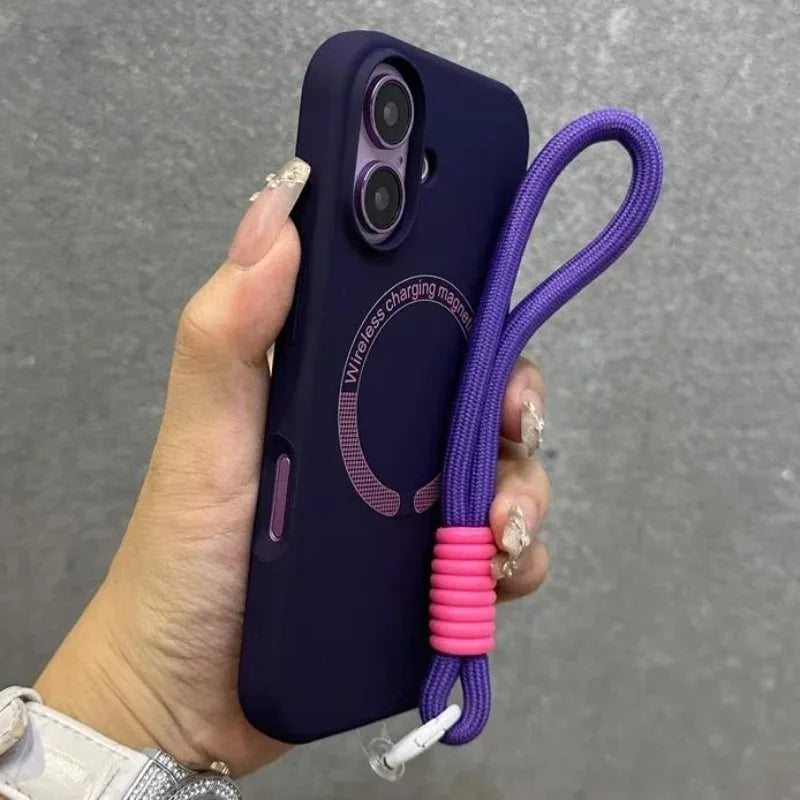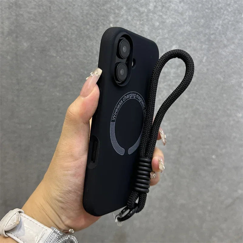 Magnetische Silikon-Handyhülle mit Handgelenkschlaufe – Stoßfest, MagSafe-kompatibel