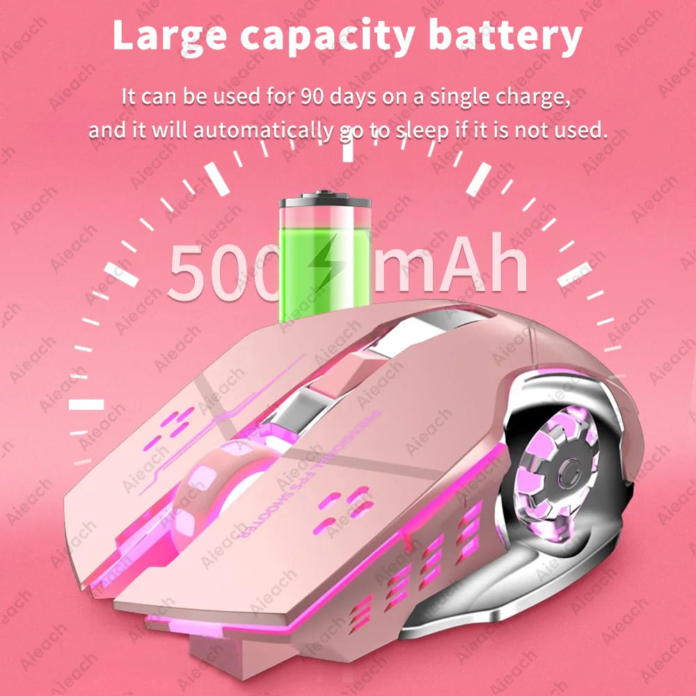 Die Maus ist mit sieben verschiedenen, zufällig wechselnden LED-Farben ausgestattet, die eine beeindruckende Atmosphäre schaffen und das Spielerlebnis optisch aufwerten. Ein integrierter 500 mAh Lithium-Akku sorgt für eine lange Laufzeit von bis zu 30 Tagen nach vollständiger Aufladung. Dank der Ladefunktion kann die Maus auch während des Ladens problemlos weiterverwendet werden.