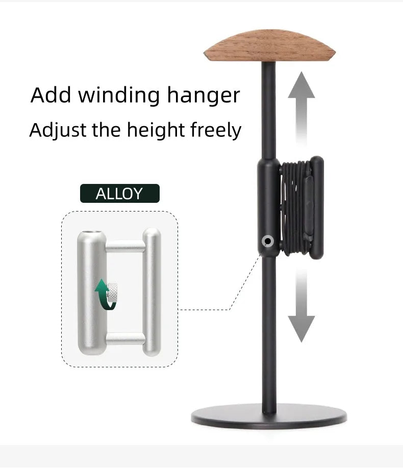 Der Halter eignet sich für die meisten Kopfhörer auf dem Markt, einschließlich HiFi- und Gaming-Headsets. Die Kombination aus robustem Metall und edlem Holz sorgt für Langlebigkeit und verleiht Ihrem Arbeitsplatz gleichzeitig ein modernes, natürliches Aussehen. Mit diesem einfachen Windkopfhörerhalter können Sie Ordnung auf Ihrem Schreibtisch halten und gleichzeitig ein erfrischendes, ästhetisches Erlebnis genießen.