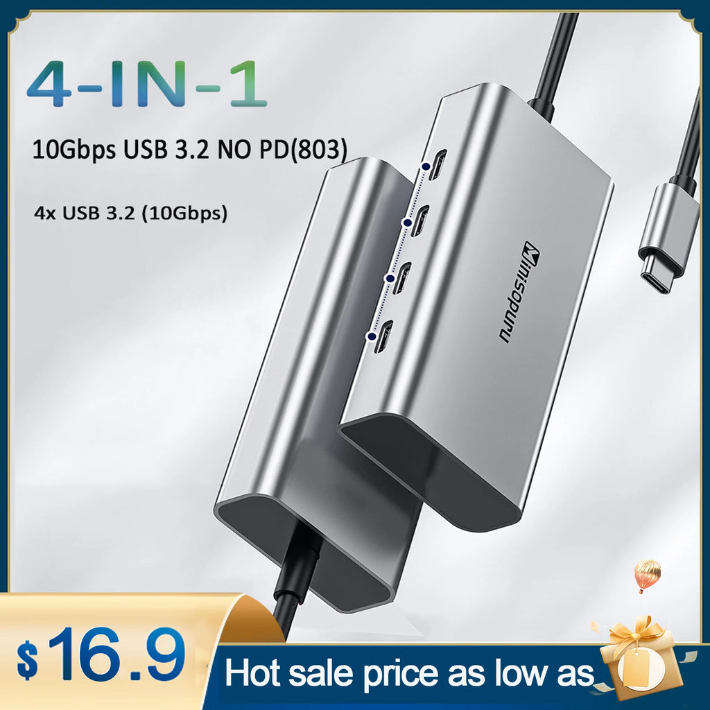 Minisopuru USB-C Hub 10Gbps mit 100W Power Delivery