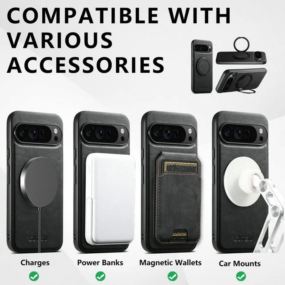 Diese hochwertige Handyhülle ist speziell für Google Pixel 10, 9, 8, 7, 6 sowie die Modelle Pro, XL, A (6A, 7A, 8A) entwickelt worden. Sie kombiniert edles Retro-Design mit praktischen Funktionen. Die Rückseite besteht aus edlem PU-Leder und ist mit einer integrierten Metall-Ringhalterung ausgestattet, die auch als Ständer dient.