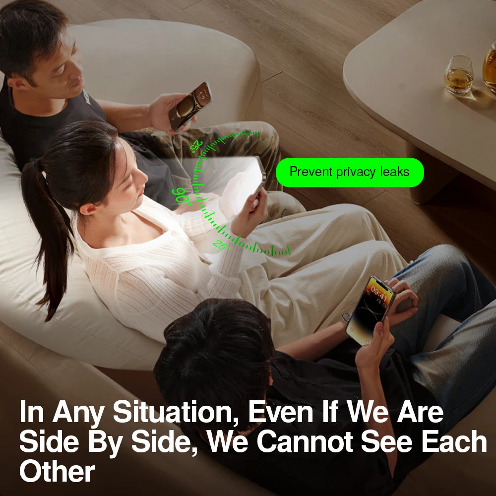 Die Anti-Spy-Funktion sorgt dafür, dass nur der direkte Betrachter den Bildschirminhalt klar erkennen kann, während seitliche Blicke durch eine Dunkelwirkung blockiert werden. So bleiben Ihre persönlichen Daten vor neugierigen Blicken geschützt – ideal für unterwegs, im Büro oder in öffentlichen Verkehrsmitteln.
