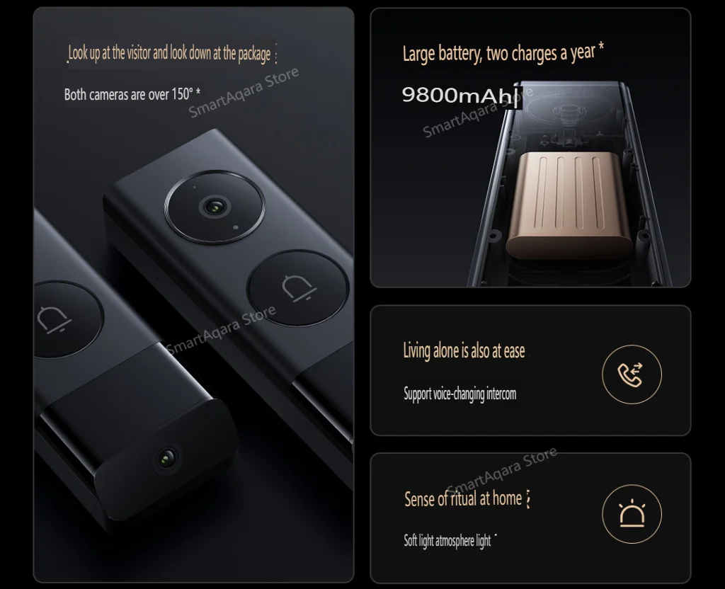 Smart Türklingel 4 Pro ist eine hochmoderne Türklingel mit Dual-Objektiv und 5MP HD-Kamera, die für optimale Sicherheit und Komfort in Ihrem Zuhause sorgt. Ausgestattet mit einer 9800 mAh Batterie bietet sie eine lange Betriebszeit und ermöglicht dank Wi-Fi IEEE 802.11 b/g/n/ax Verbindung und Low-Power-Bluetooth eine stabile und energieeffiziente Verbindung. Die Türklingel unterstützt sowohl Cloud-Speicher als auch einen integrierten 32 GB eMMC Speicher, damit Sie alle Aufnahmen sicher speichern und jederzeit darauf zugreifen können.