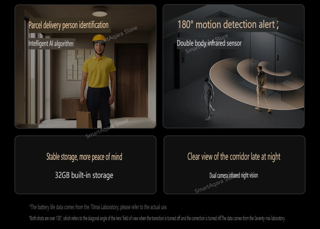 Die Kamera verfügt über eine Infrarot-Nachtsichtfunktion, die klare Bilder auch bei schlechten Lichtverhältnissen gewährleistet. Mit einem Weitwinkelobjektiv können Sie Besucher einfach erfassen und haben dank Zwei-Wege-Audio-Kommunikation die Möglichkeit, direkt mit ihnen über die Mi Home App zu sprechen. Die Installation ist kabellos und unkompliziert, ideal für moderne Smart-Home-Systeme.