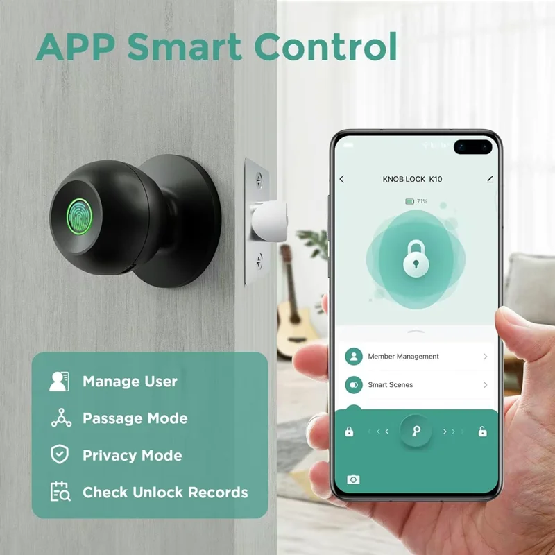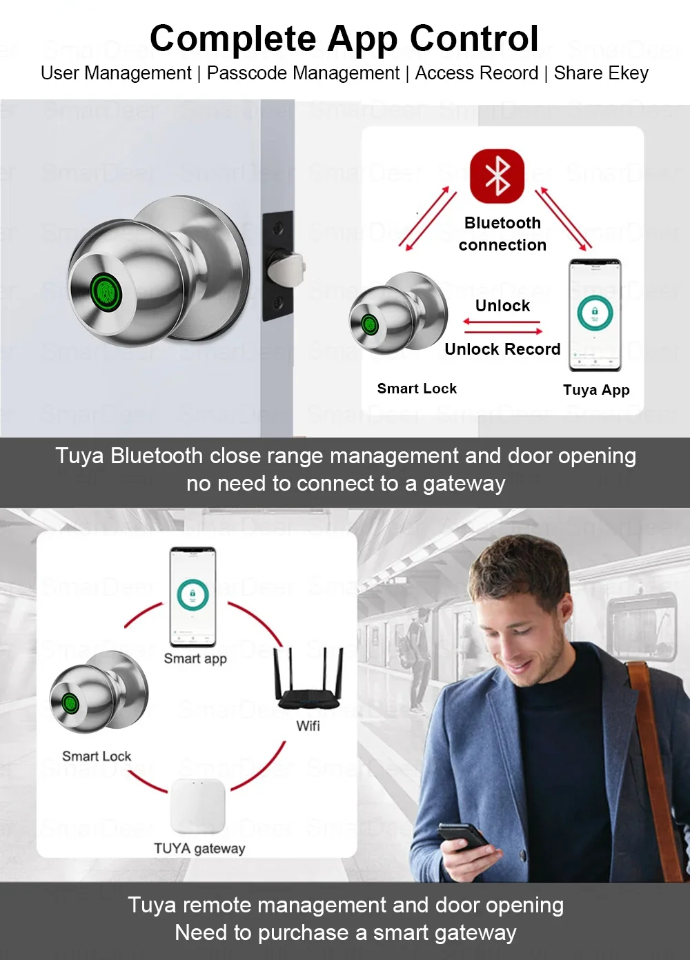 Smartes Tuya Bluetooth Türschloss mit Fingerabdruck und App-Steuerung für schlüssellosen Zugang