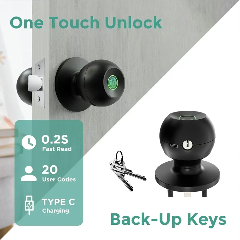 Die Auto-Lock-Funktion sorgt dafür, dass Ihre Tür automatisch verriegelt wird, um ungewolltes Offenstehen zu vermeiden. Sollte der Akku leer sein, garantiert ein Notfall-Backup-Schlüssel den Zugang. Das schlanke Design ermöglicht die einfache Integration in verschiedenste Räume wie Schlafzimmer, Garage, Büro oder Wohnung. Mit einer Fingerabdruckspeicherkapazität von 20 und zwei mechanischen Schlüsseln sind mehrere Benutzer bequem abgedeckt.